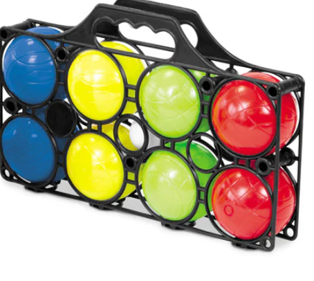 Set includes 8 x coloured 70mm balls, 1 x pallino (jack) and a handy storage case.