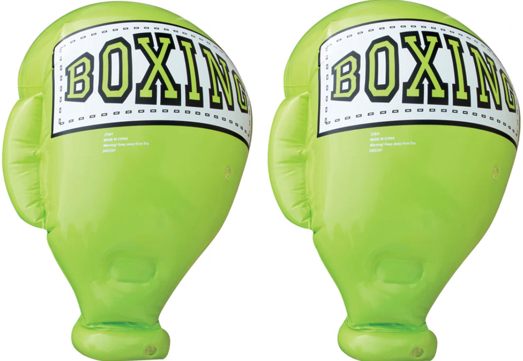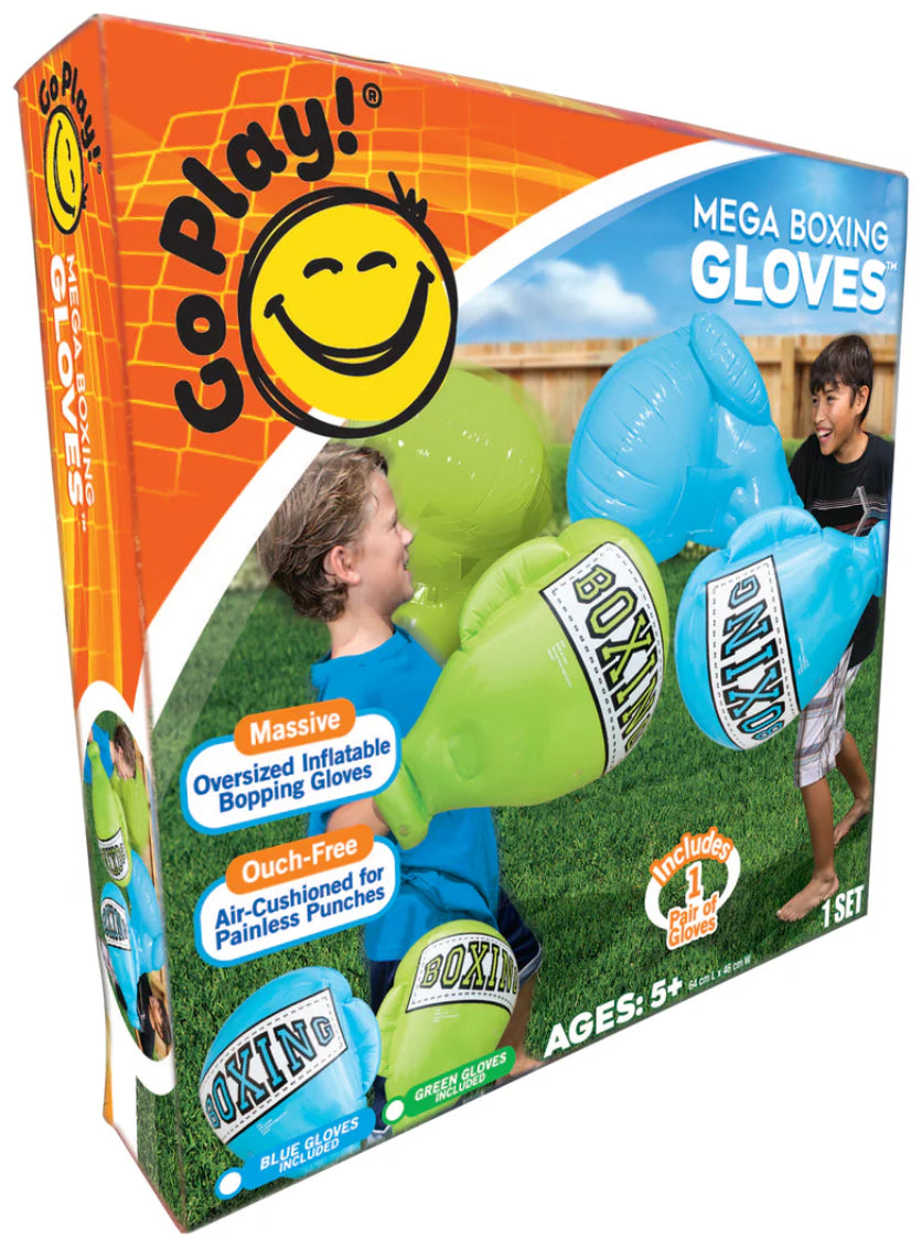 Throw painless punches with the Go Play! Mega Boxing Gloves Set. Huge 30cm diameter punching surface! A Giant pair of inflatable boxing gloves!