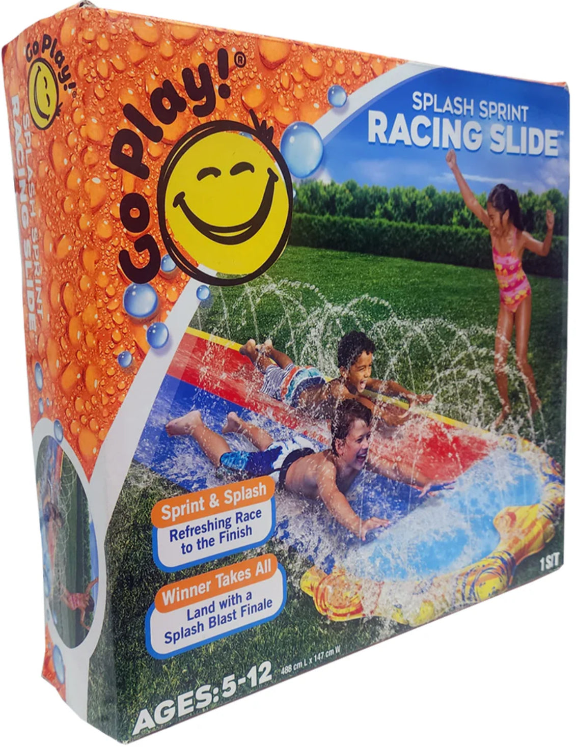 Test your speed and challenge your friends with the Go Play! Splash Sprint Racing Slide.