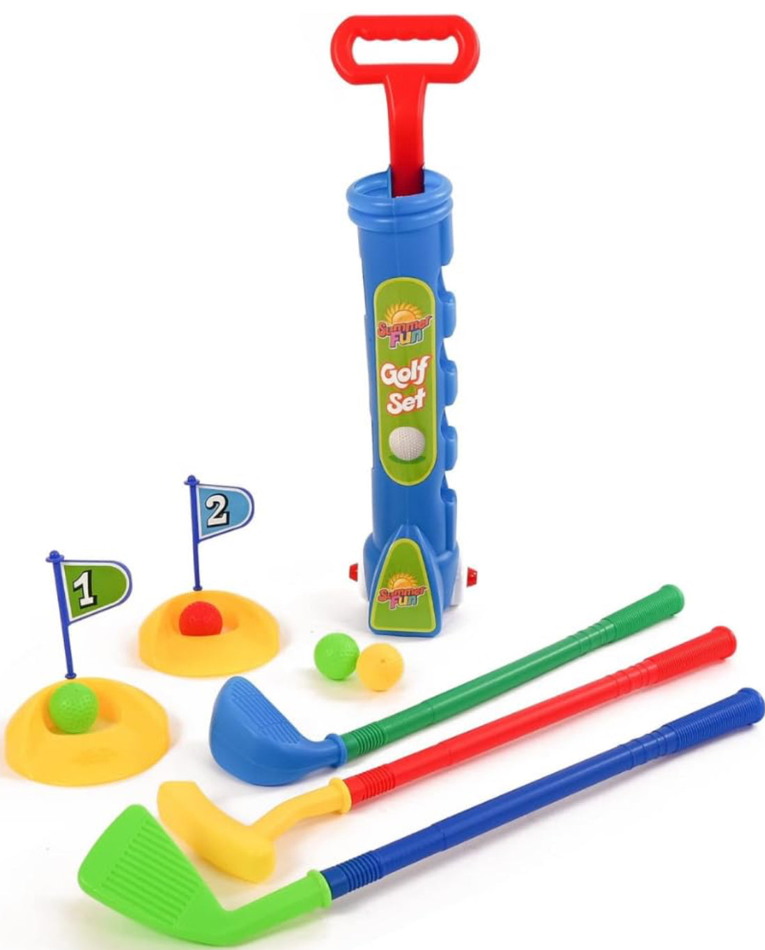 Transform your back lawn into a golf course with your very own golf set and handy storage caddy bag. Includes 3 clubs, 3 balls and plastic carry bag for all your equipment.