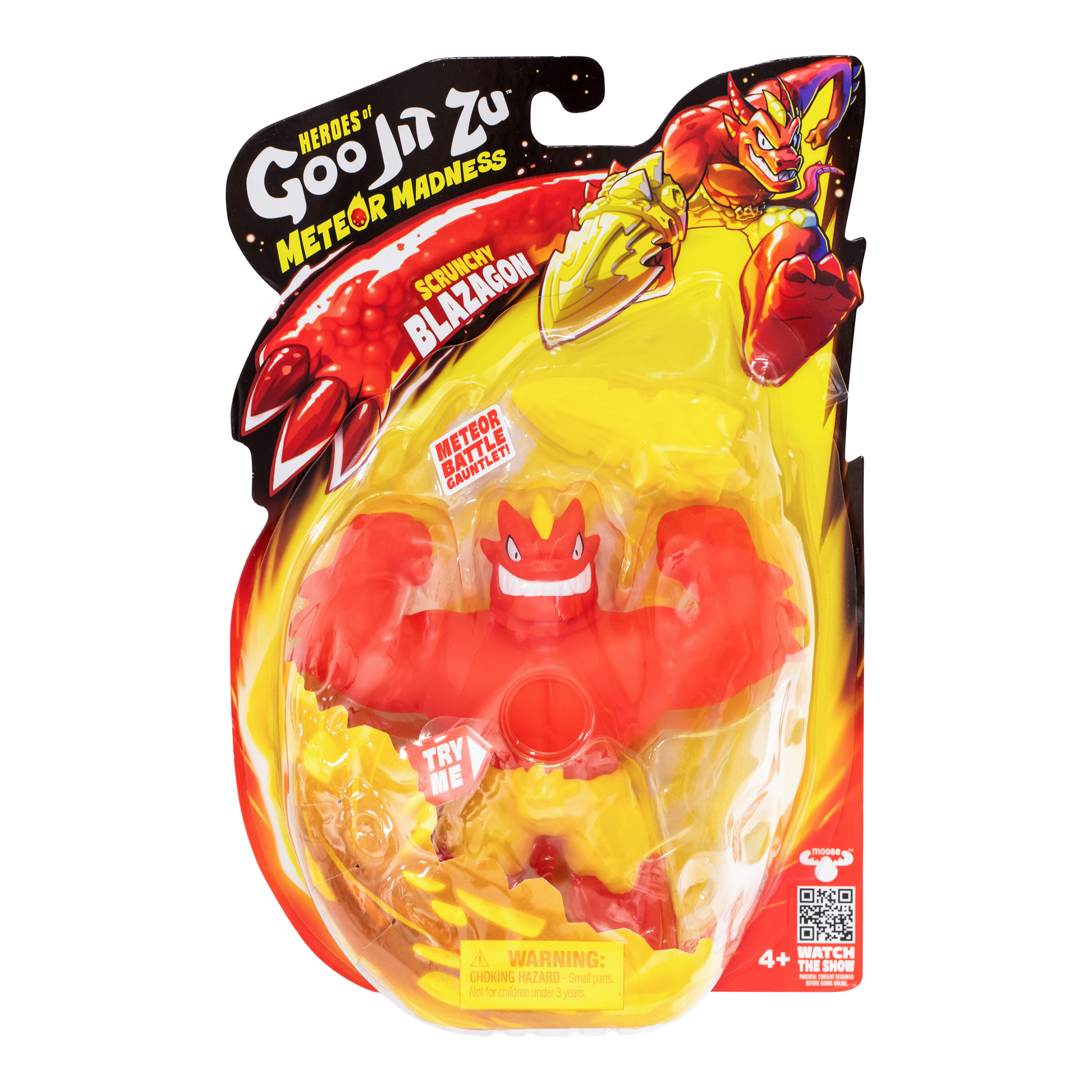Stretched to the extreme and heading straight for you! Brace yourself for a meteoric blitz with the all-new Heroes Of Goo Jit Zu meteor madness range! The heroes of goo jit zu are about to face their biggest, wildest challenge yet! Can they stop Meteoraxs monstrous meteor power before he wipes out the world? Kids can watch the heroes race to save the goo-niverse from total devastation in brand-new episodes streaming on YouTube! Which action-packed moment will they recreate first with these epic, stretchy and gooey action figures? Fan-favorite heroes return alongside fierce new allies and villains, each equipped with a meteor battle gauntleta powerful, interchangeable weapon designed for extreme stretch battle strikes! With bold new styling and the ability to stretch up to 3 times their size, heroes of goo jit zu meteor madness takes action-packed adventure to a whole new level.
