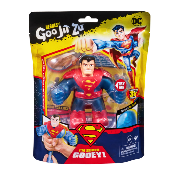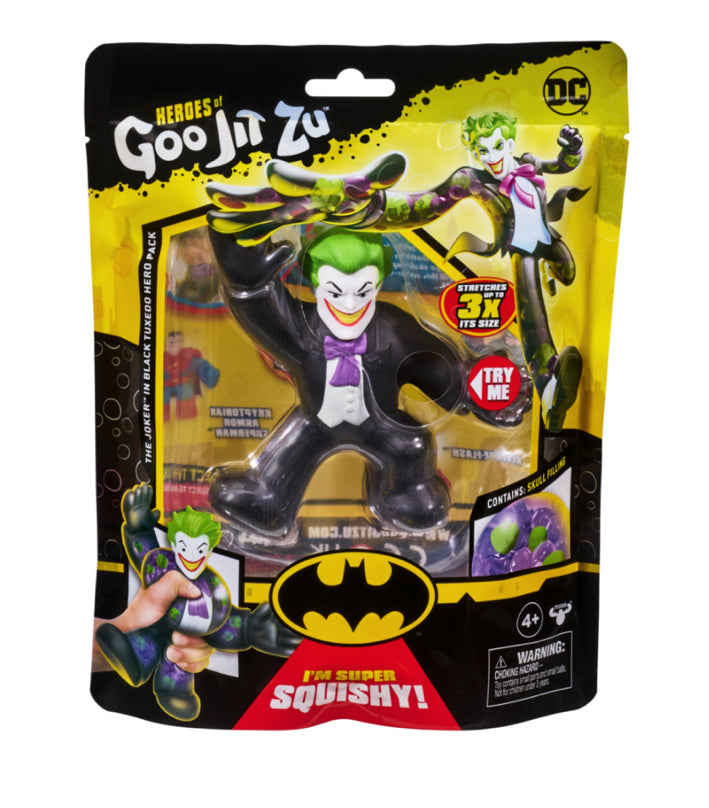 This Goo Jit Zu DC Hero can stretch, twist and squish his unique Goo filling and move in a way like he never has before! With his extra, super squishy filling you can squeeze his body and watch his Gel Bead filling bulge out! Play with your Batman action figure in a new GOOEY way and help save the day – with NO mess! Squeeze, squish and stretch their arms, legs and body! His amazing squishy body can stretch up to 3 times its size and then return to its original shape and size! Collect all 4.5″ DC Heros, including Heavy Armor Batman, Kryptonian Armor Superman, Reverse-Flash and The Joker in his black tuxedo! Each DC Hero has their own unique goo filling with a different texture and feel like you have never seen or felt before!