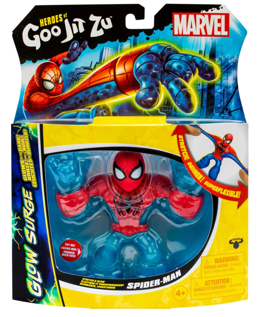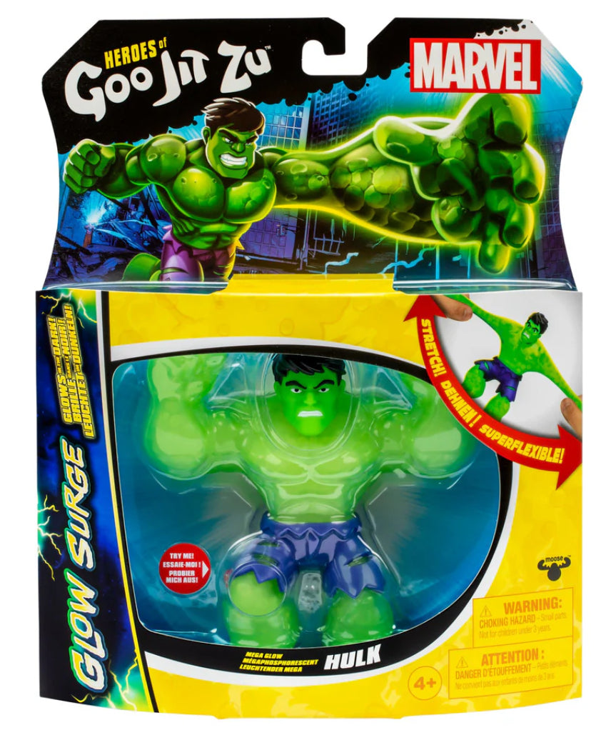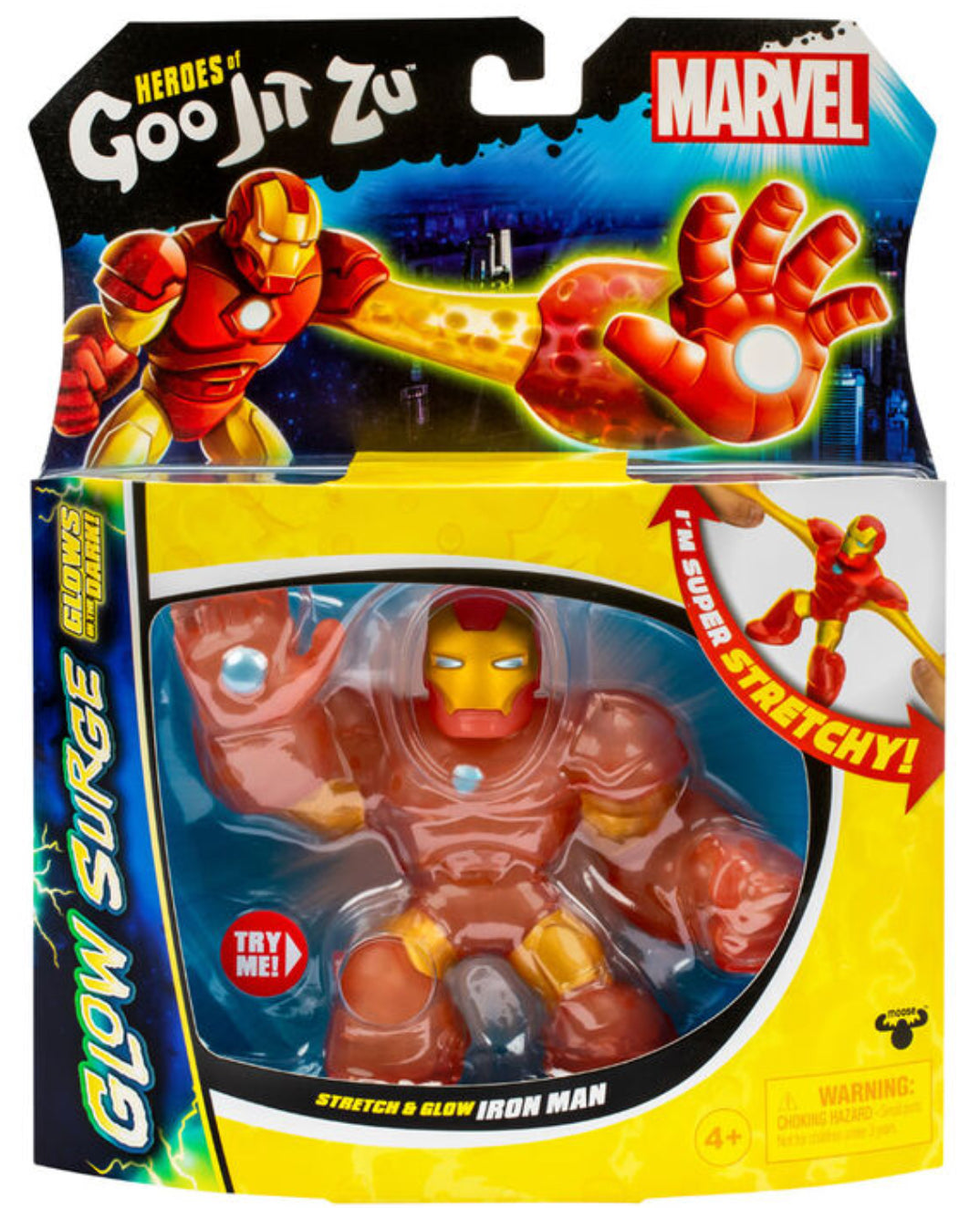 Collect all 4.5" Marvel Heroes including the Stretch And Glow Spider-Man, Mega Glow Hulk and Stretch and Glow Iron Man! Play with your favorite Marvel heroes in a new GOOEY glowing way and with NO mess!