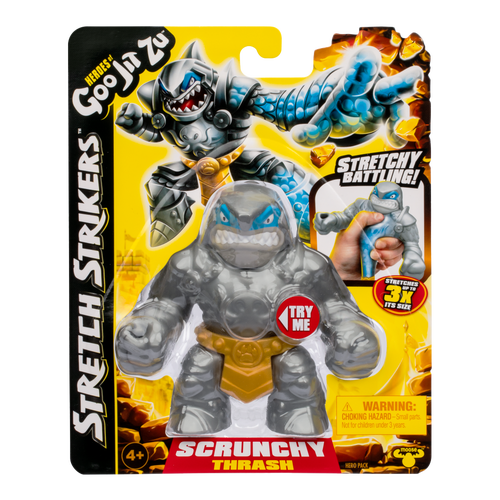 Stretch his body up to three times its size to unleash an EPIC Stretch Attack! Also, discover his unique filling by squeezing and stretching his body. Collect and battle with all the Stretch Strikers today!