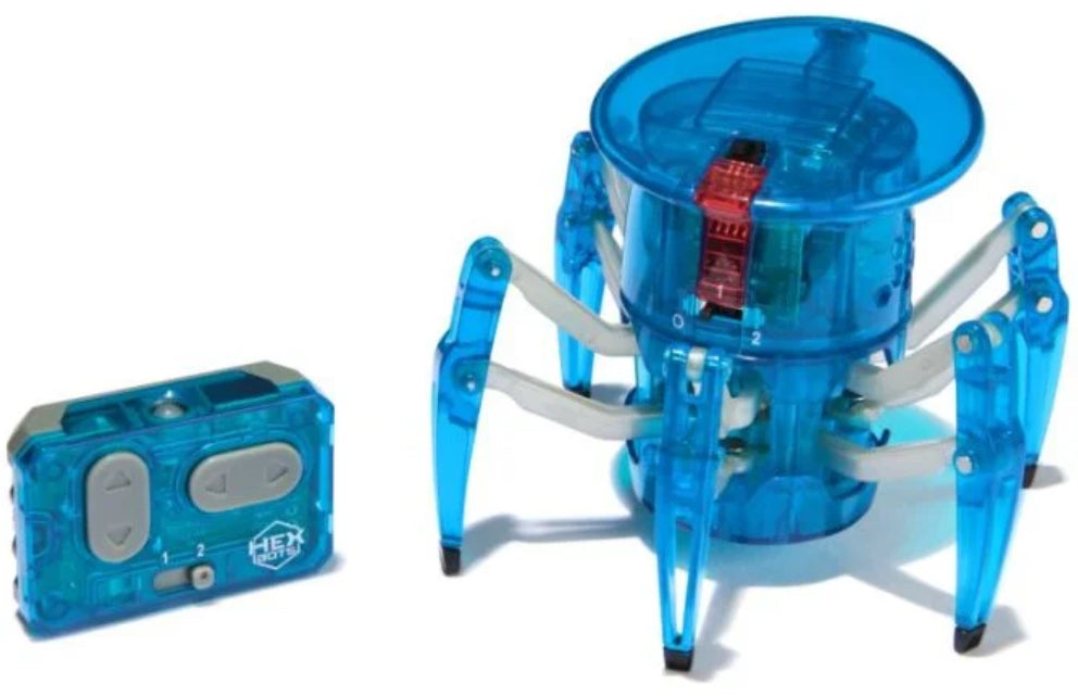 The Hex Bots Spider is an electromechanical marvel to watch and operate. Scare your friends and family with the mechanical spider robot creature. As you control this bug, you see the complexity of its internal mechanisms. Features 360 deg. steering, and LED forward eye, and two-channel infrared remote control. The remote allows you to operate multiple bugs independently or at the same time. This bug is filled with robotic intelligence and protected by a hard, transparent exoskeleton casing. The Hex Bots Spider is compliant with CPSIA standards. This is the perfect toy for kids aged 4-6. These boy toys robots are an essential for your collection of cool tech toys for boys aged 4-6