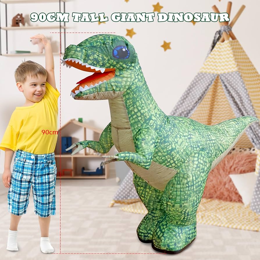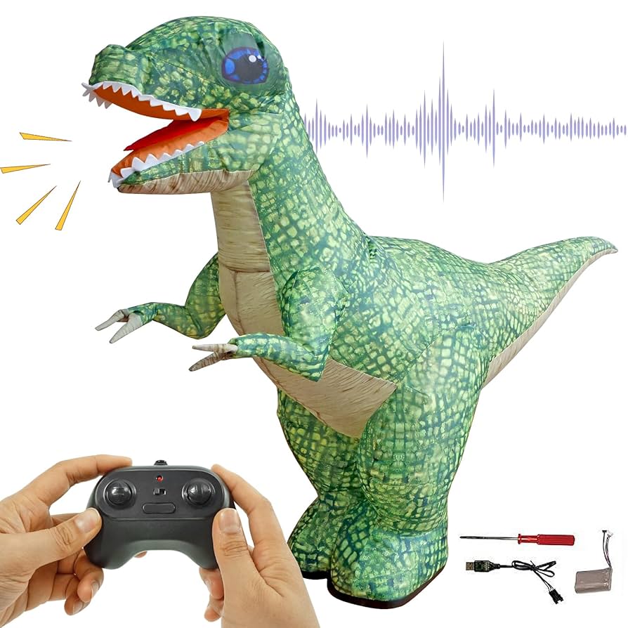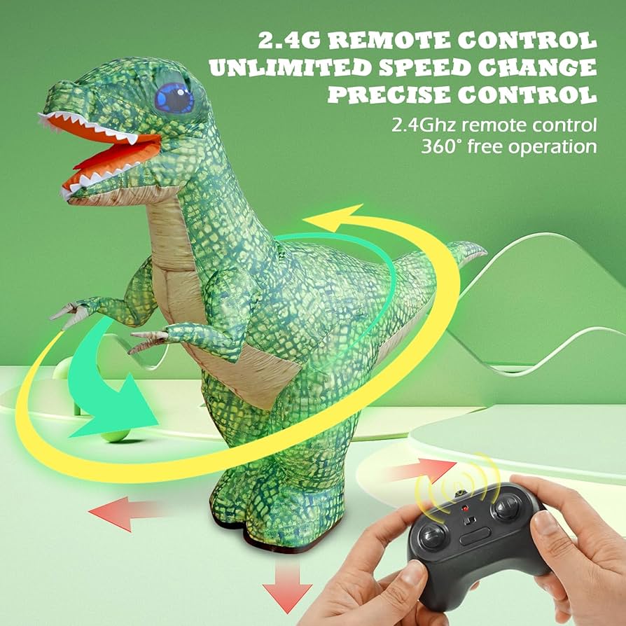 Breaking news! A giant dinosaur is running out of the Jurassic, green T-Rex, size: 125 x 40 x 90cm, with Rroar sounds. Super-shocking for boys' dinosaur favor, includes a rechargeable dinosaur car toy, a remote control, a USB cable, etc. Use 2.4GHz Multi-Function Remote Control--Go forward/ Backward and 360°Rotation. Two wheels can support dinosaurs to stand independently and walk. very responsive and quick. Imagine your child chasing these dinosaurs around the house, How happy they will be?