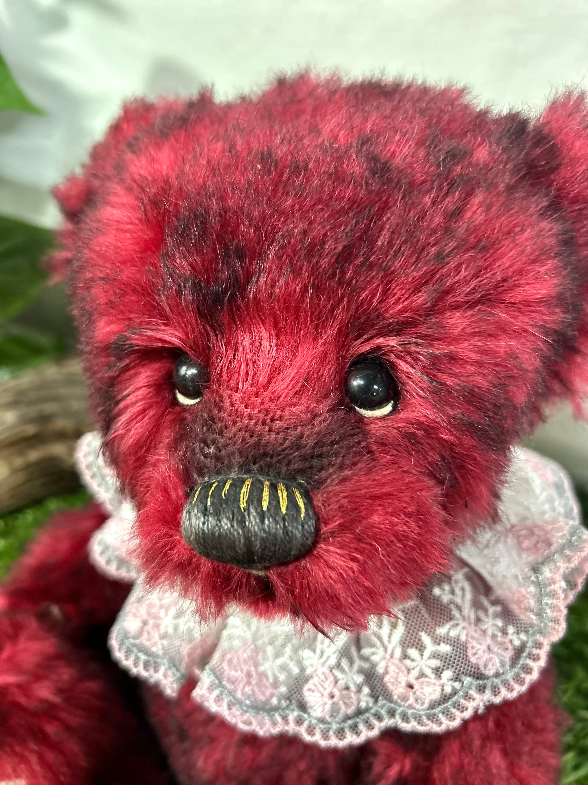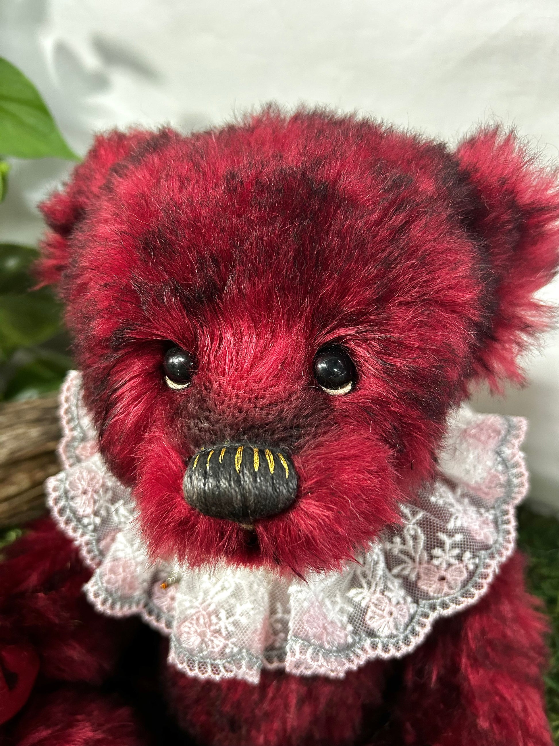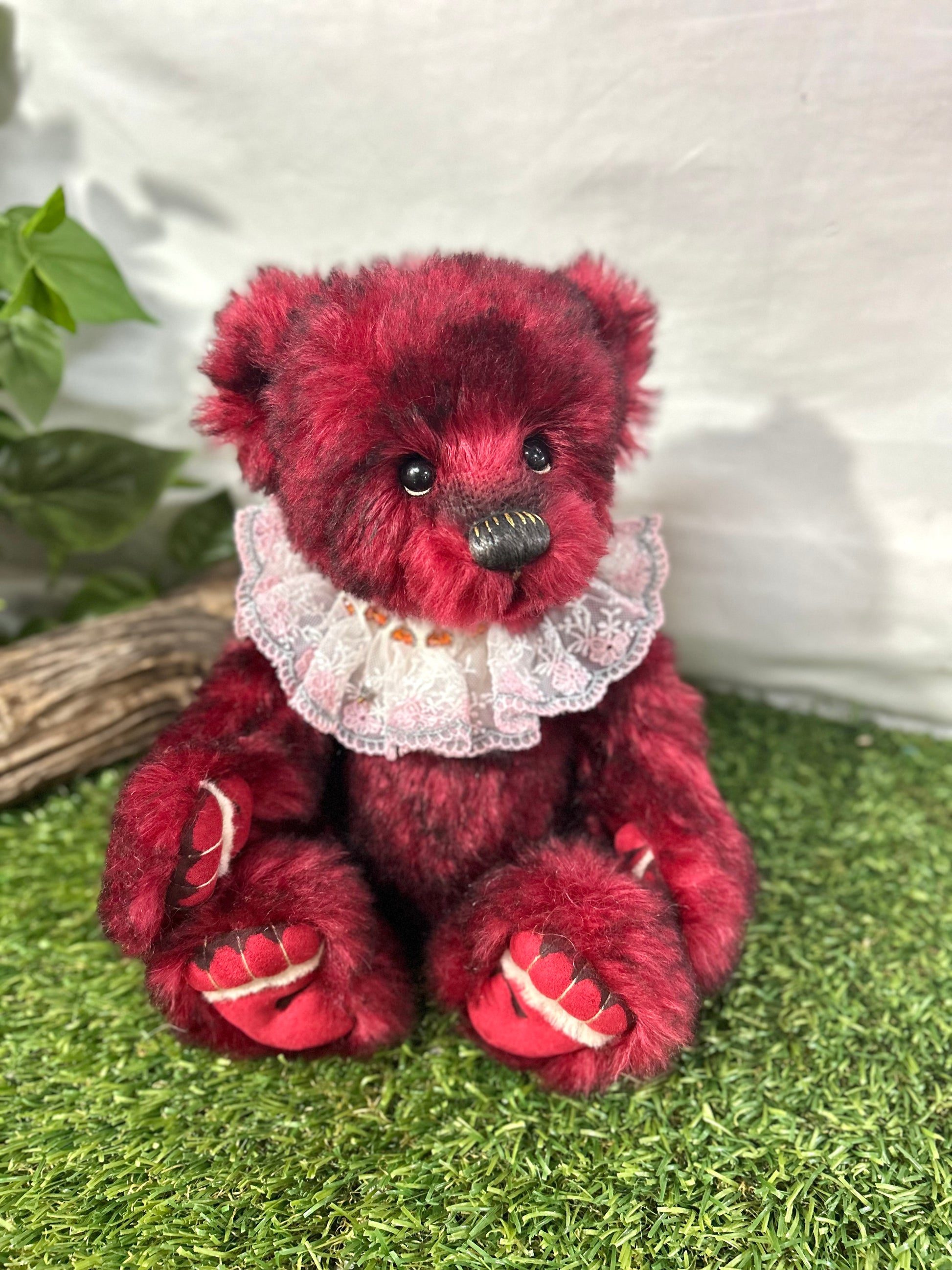 well-known puzzle games. Anna Gram is paw-geous deep red coloured bear from our 2024 Isabelle Collection, made from sumptuously dense alpaca and mohair fur. She features captivating dark eyes and her sculpted paw pads feature delightful tickly toes, complemented by a touch of grey fur underneath. She is elegantly finished with a beautiful lace collar. Numbered limited-edition of only 200.