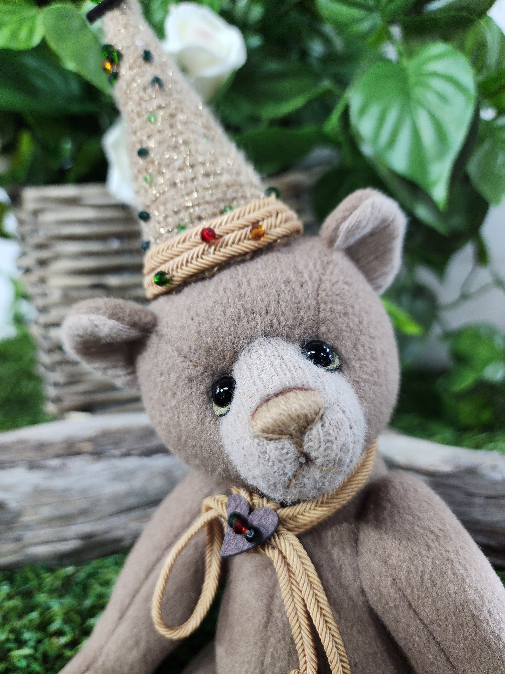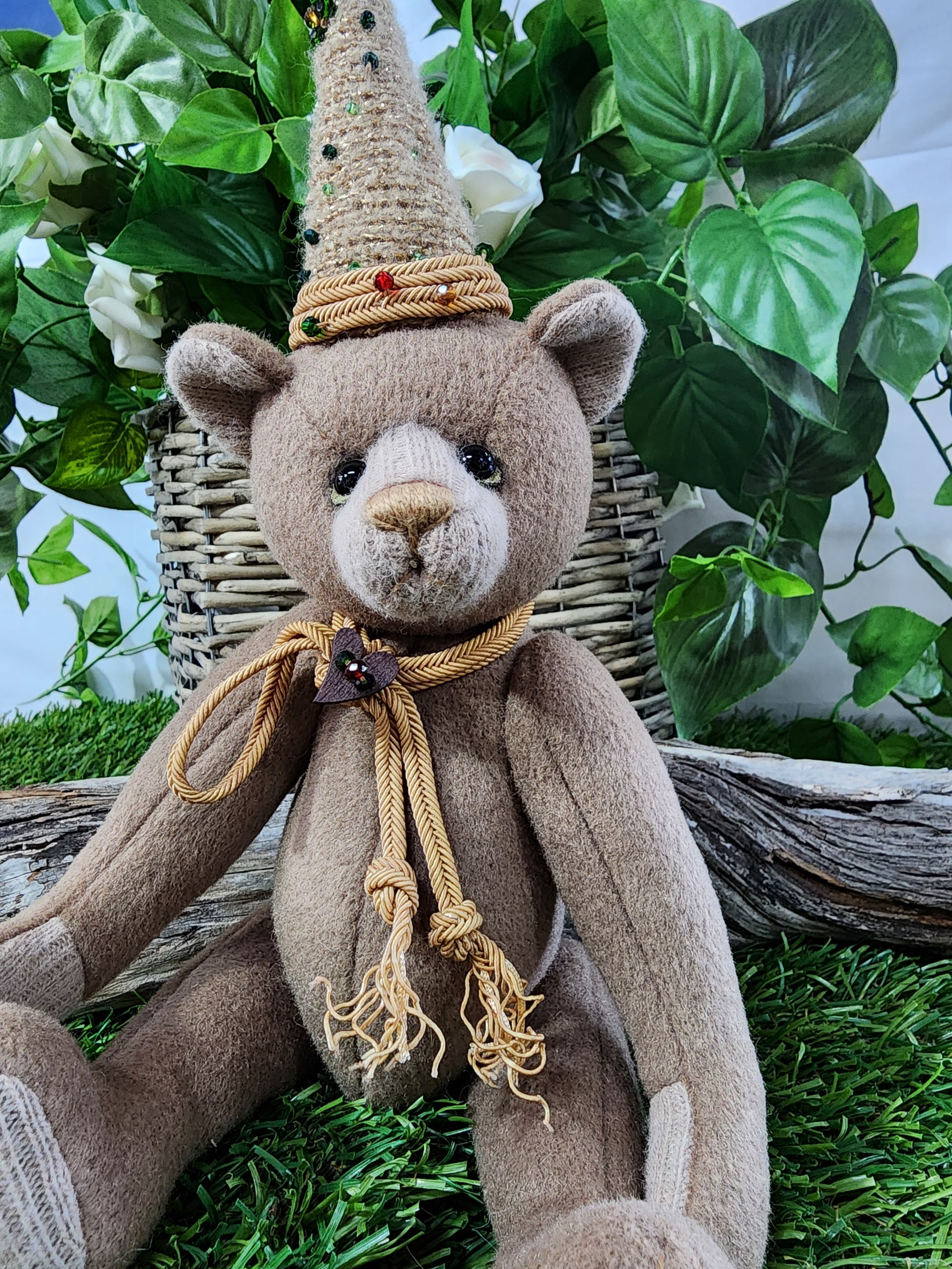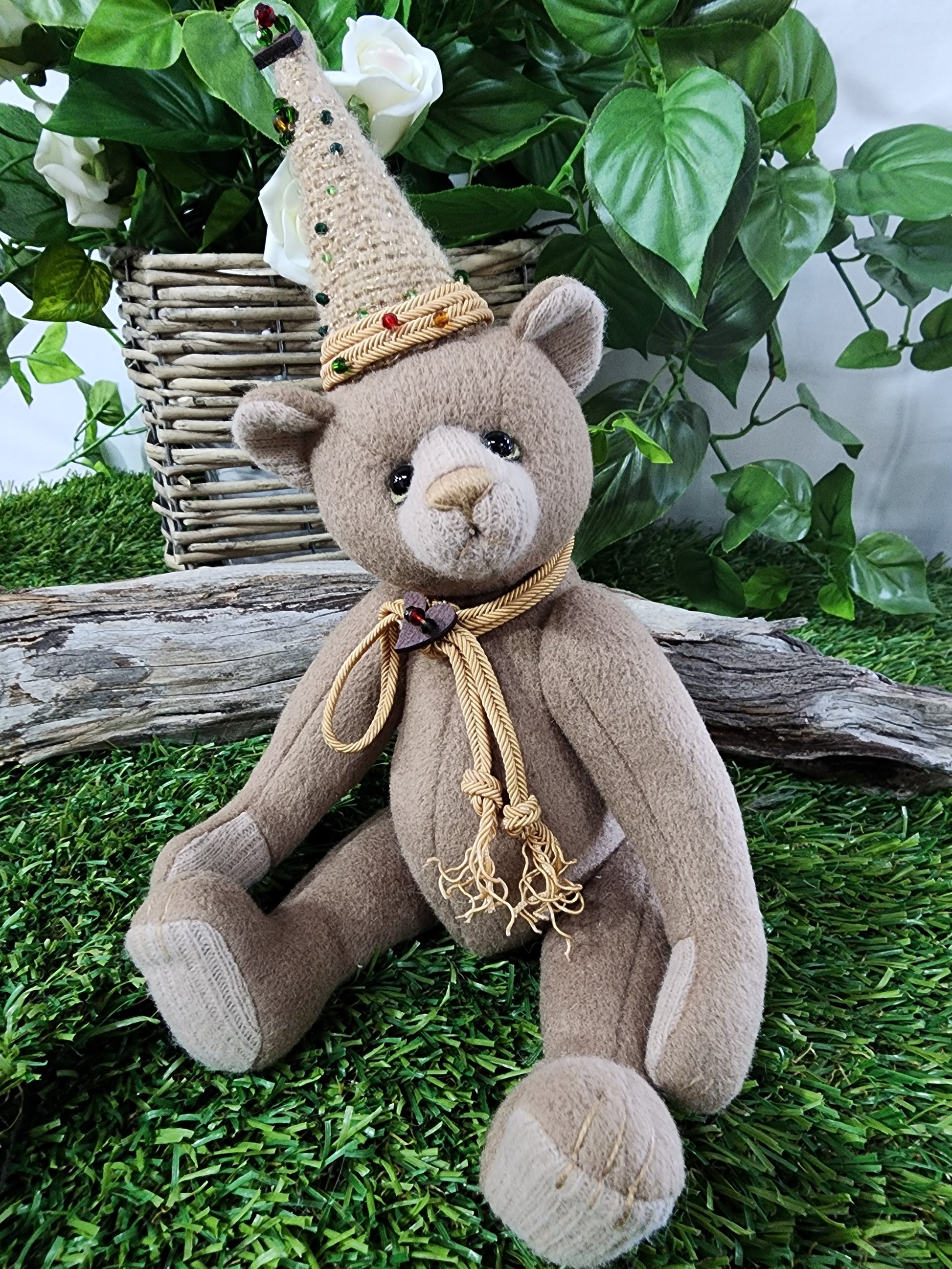 Meet Guffaw, a bear-utiful light brown wool and plush clown bear. He is part of our paw-some Cuddle Time Collection. He is looking forward to joining your hug.