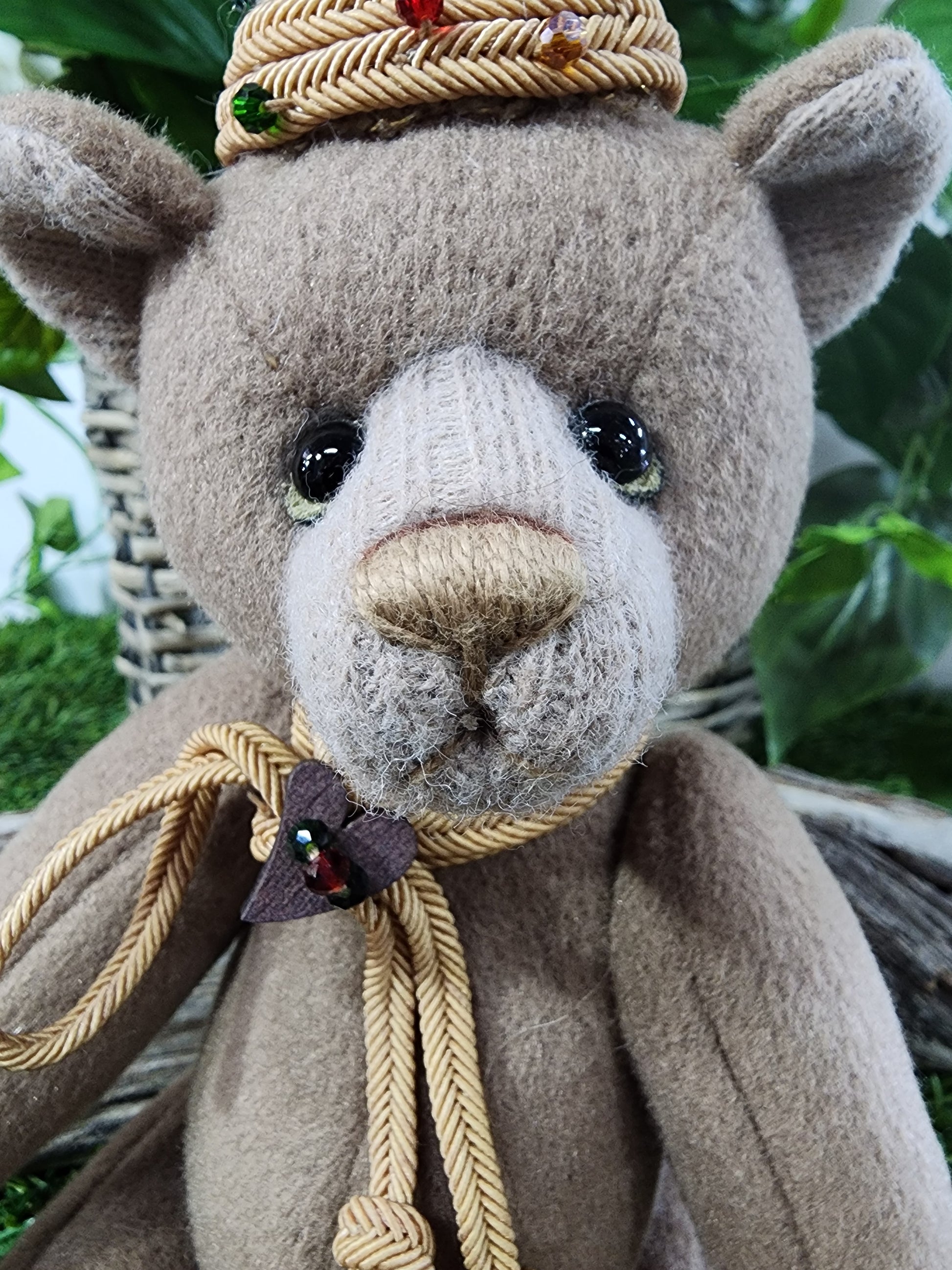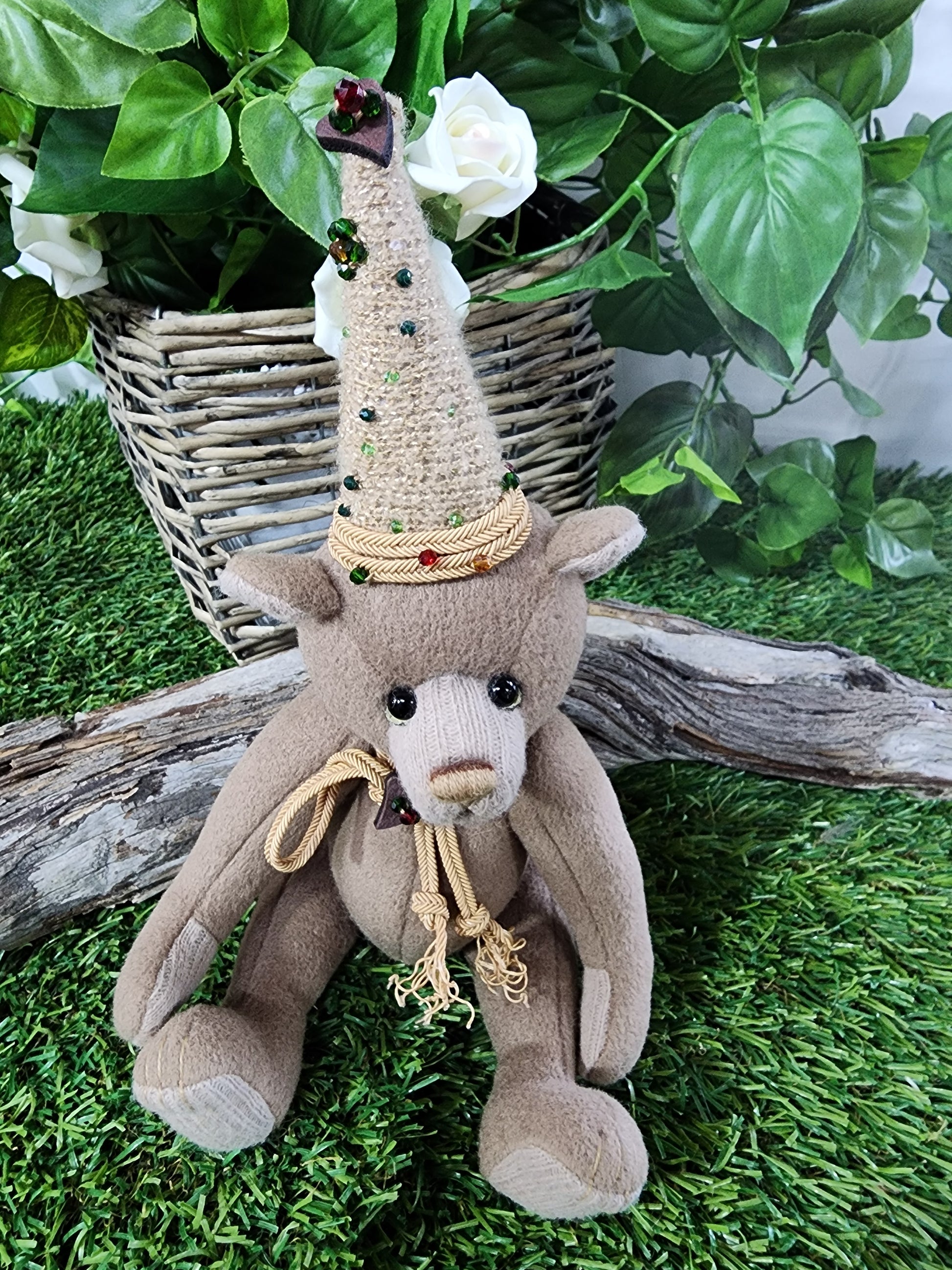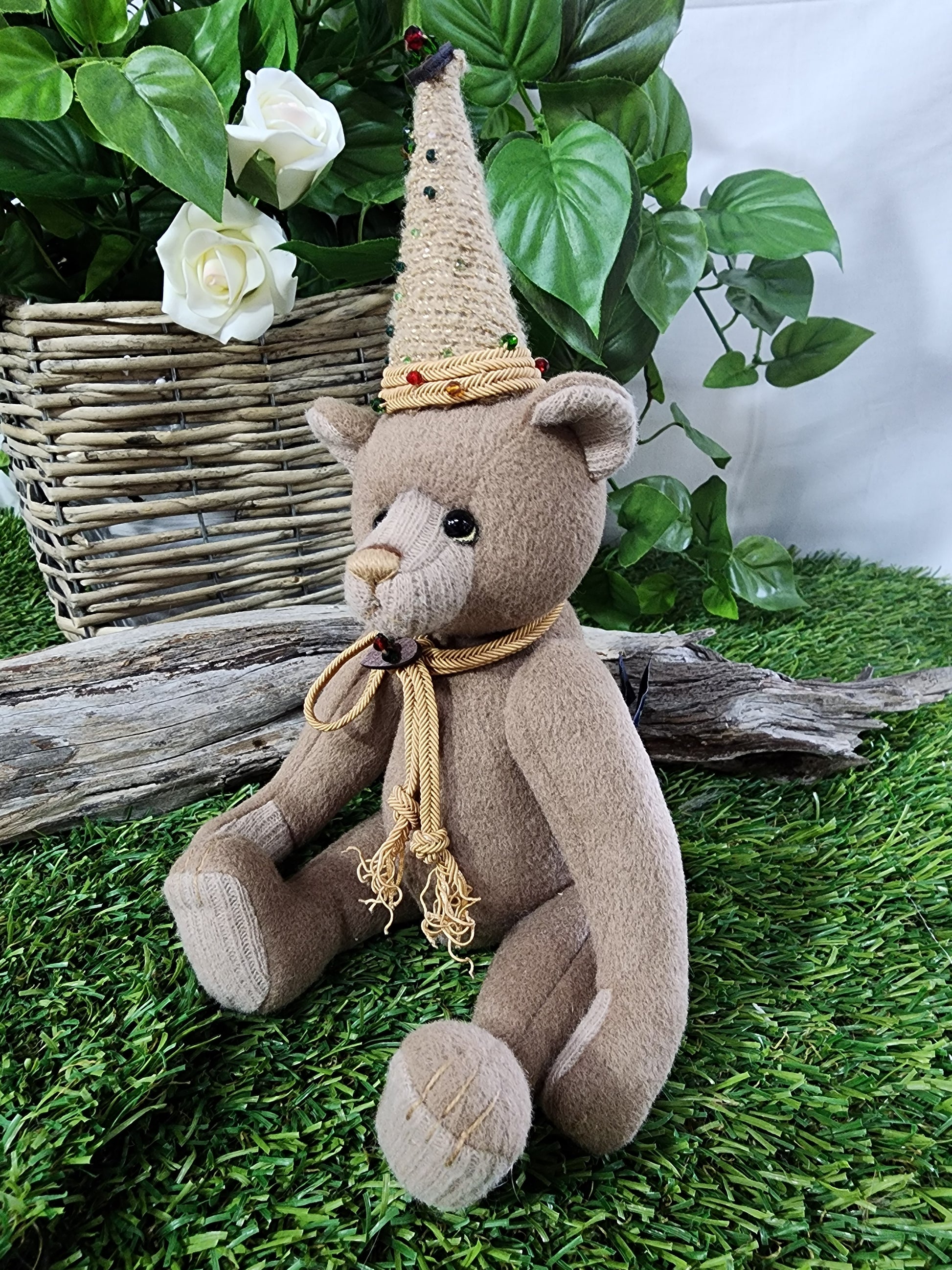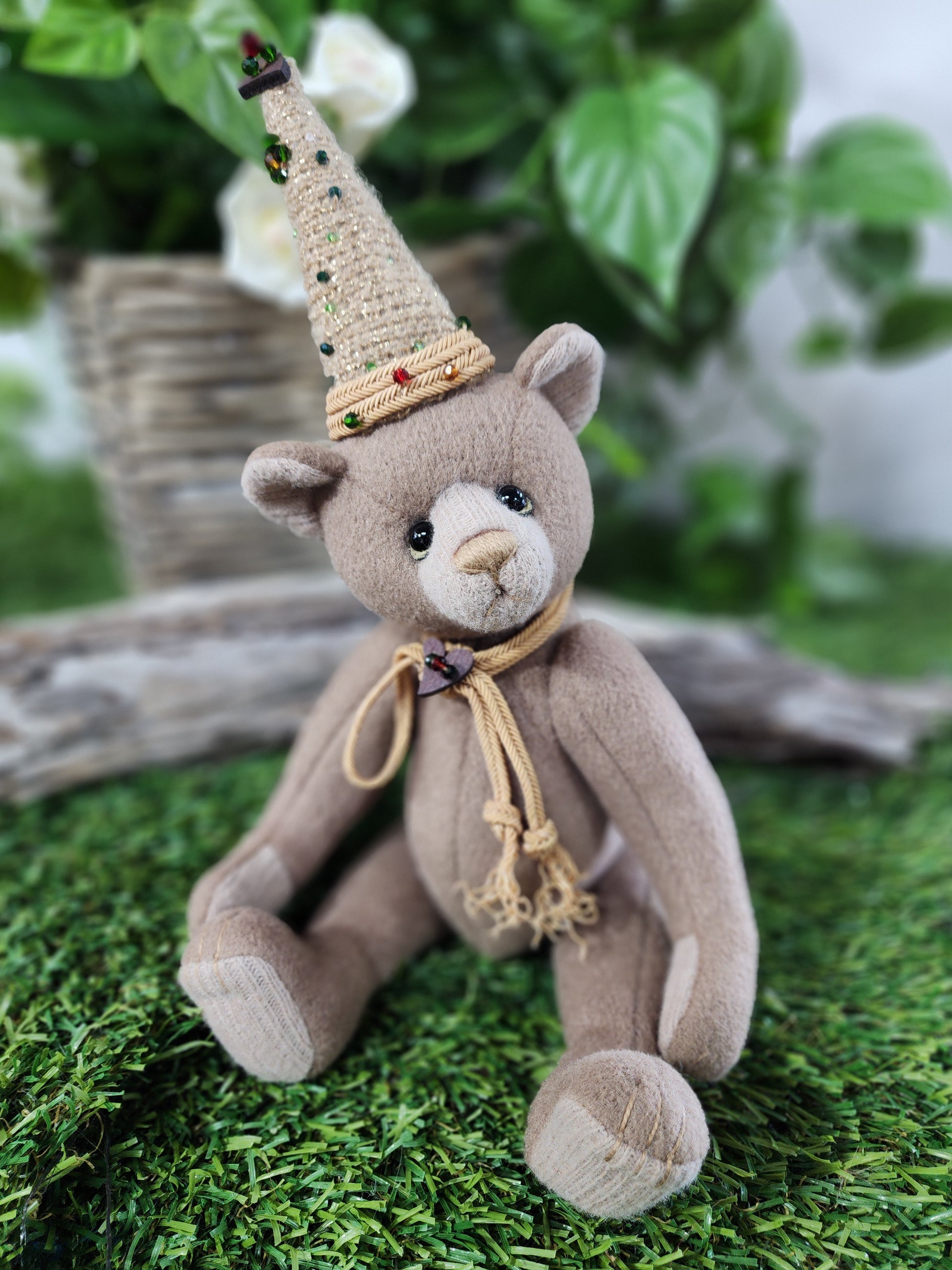 Meet Guffaw, a bear-utiful light brown wool and plush clown bear. He is part of our paw-some Cuddle Time Collection. He is looking forward to joining your hug.