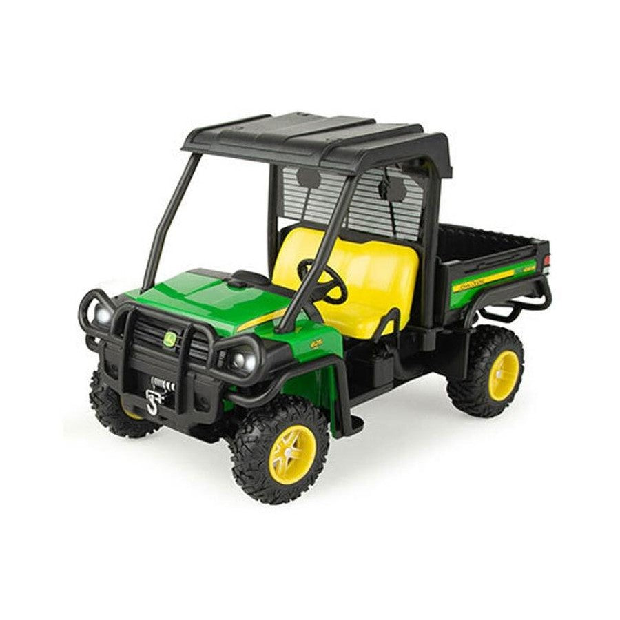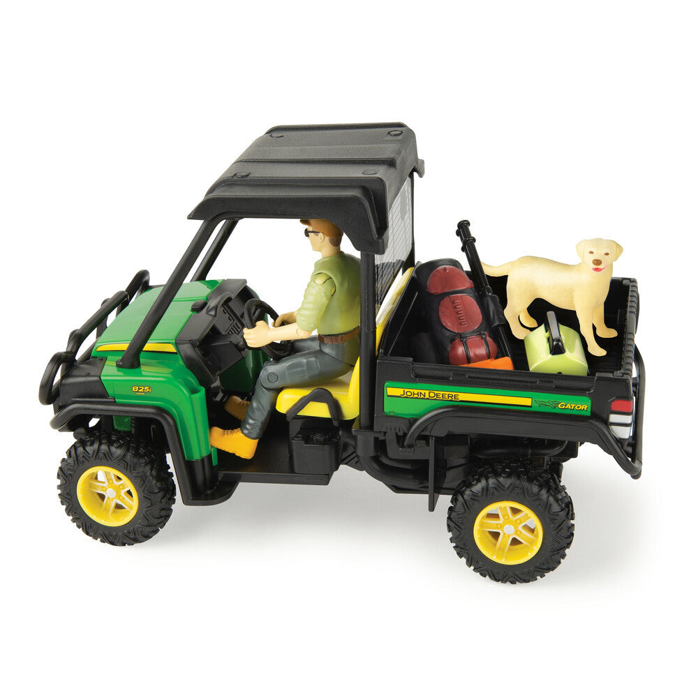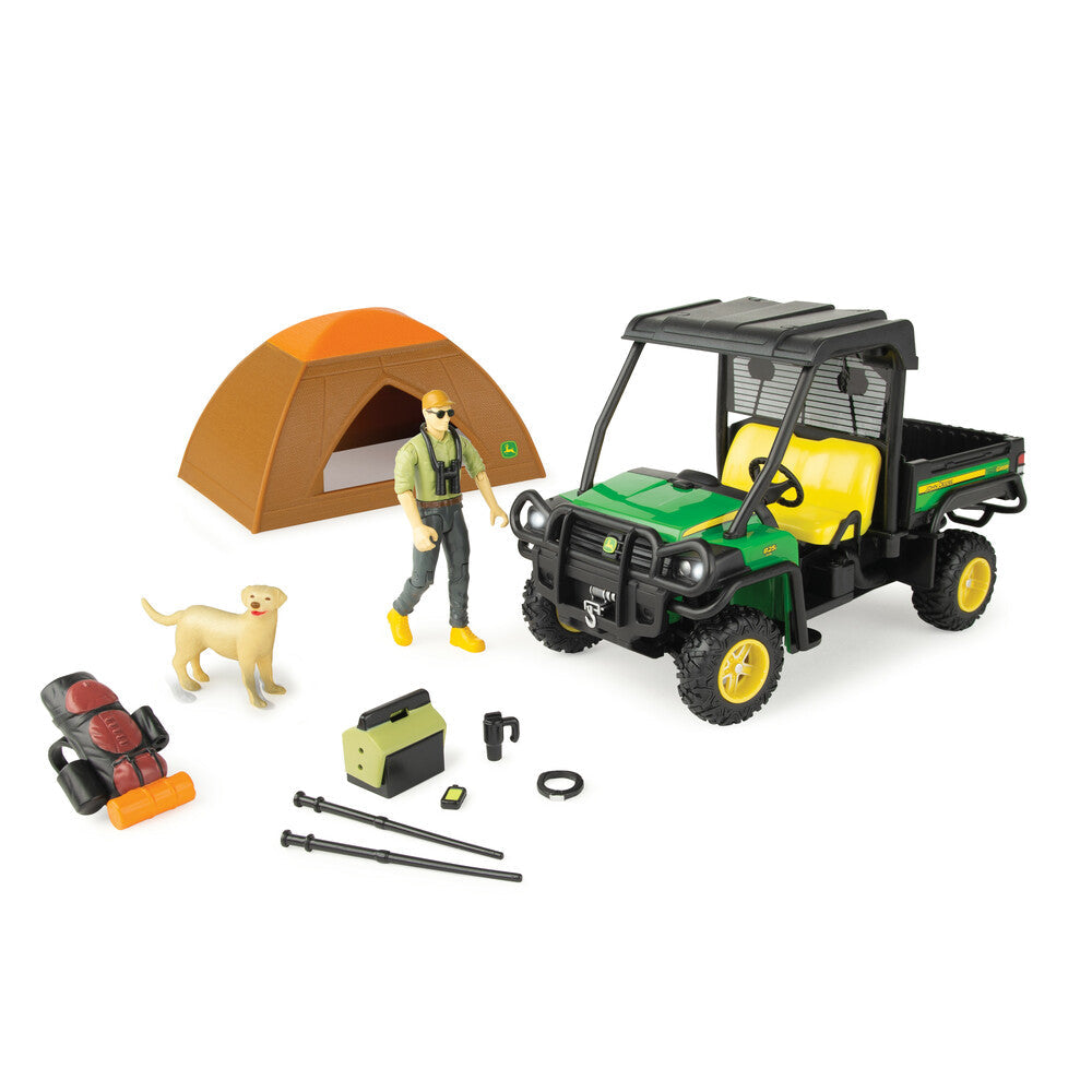 Take the action off-road with this 1:16 John Deere Big Farm Gator & Outdoor Adventure Toy Set! This amazing set includes a 1:16 John Deere Gator with lights and sounds plus an articulated figure, camping accessories and a dog (man's best friend)! Other Gator features include free rolling wheels and a tilting dump bed.