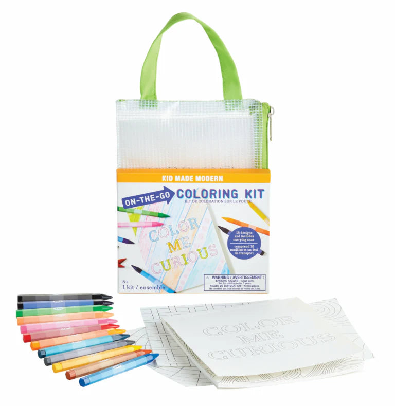 Creating doesn’t have to stop the minute you hit the road. With our On-The-Go Coloring Kit, you can take your supplies with you and color wherever and whenever you like. Everything nestles perfectly into the printed houndstooth canvas tote that zips closed and features a convenient carrying handle.