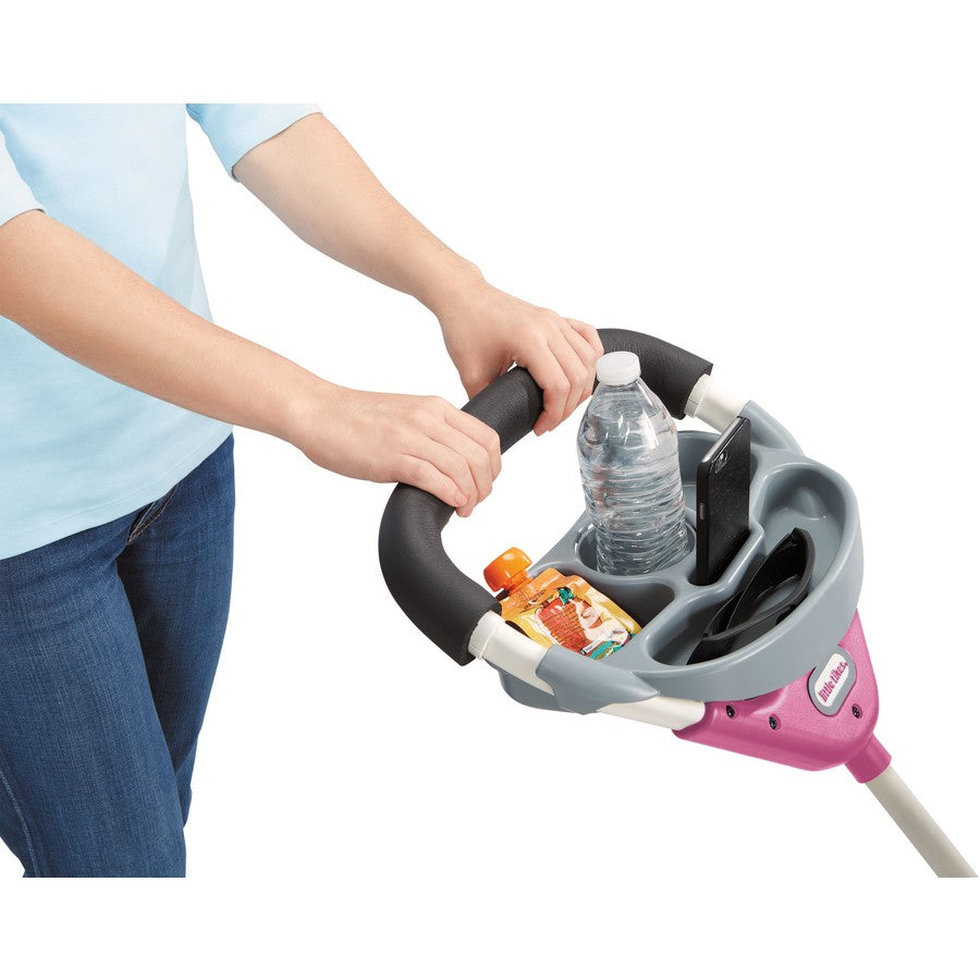 The Little Tikes Perfect Fit 4-in-1 Trike converts from a parent-propelled stroller to an independent trike to help your little one learn to ride with ease. A large storage bucket and a cup holder on the parent push bar ensure you travel with all of the daily necessities, and a full-shade canopy keeps your child’s sensitive skin out of the sun in all four stages. The safety bar keeps drinks within reach for your little rider. Remove the foot platform when your tiny tot is ready to learn how to pedal on his or her own. The waist bar removes to give your child access to the steering wheel, and you can help guide your little one until he or she has mastered turning and is ready for independent riding.