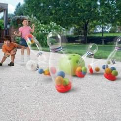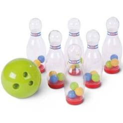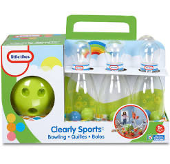 Little Tikes Clearly Bowling game provides hours of fun active play! The pins feature colorful balls that make knocking them down even more fun. This brightly colored kids bowling game teaches hand-eye coordination. | • Hear the sounds of real crashing pins.