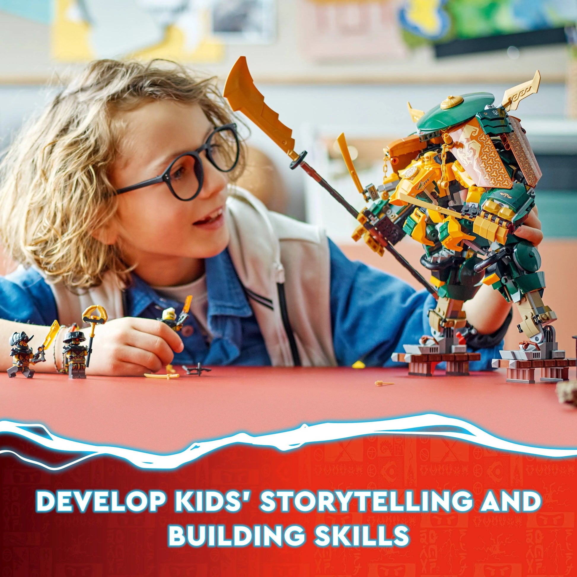 Kids aged 9+ can play out exhilarating training and battle scenes from the NINJAGO Dragons Rising TV series with Lloyd and Arin’s Ninja Team Mechs (71794). This never-before-seen building set features ninja master Lloyd’s and his student Arin’s posable mechs, which can be merged to create 1 larger and heavily armed mech for endless play opportunities. This mech playset comes with 5 minifigures.