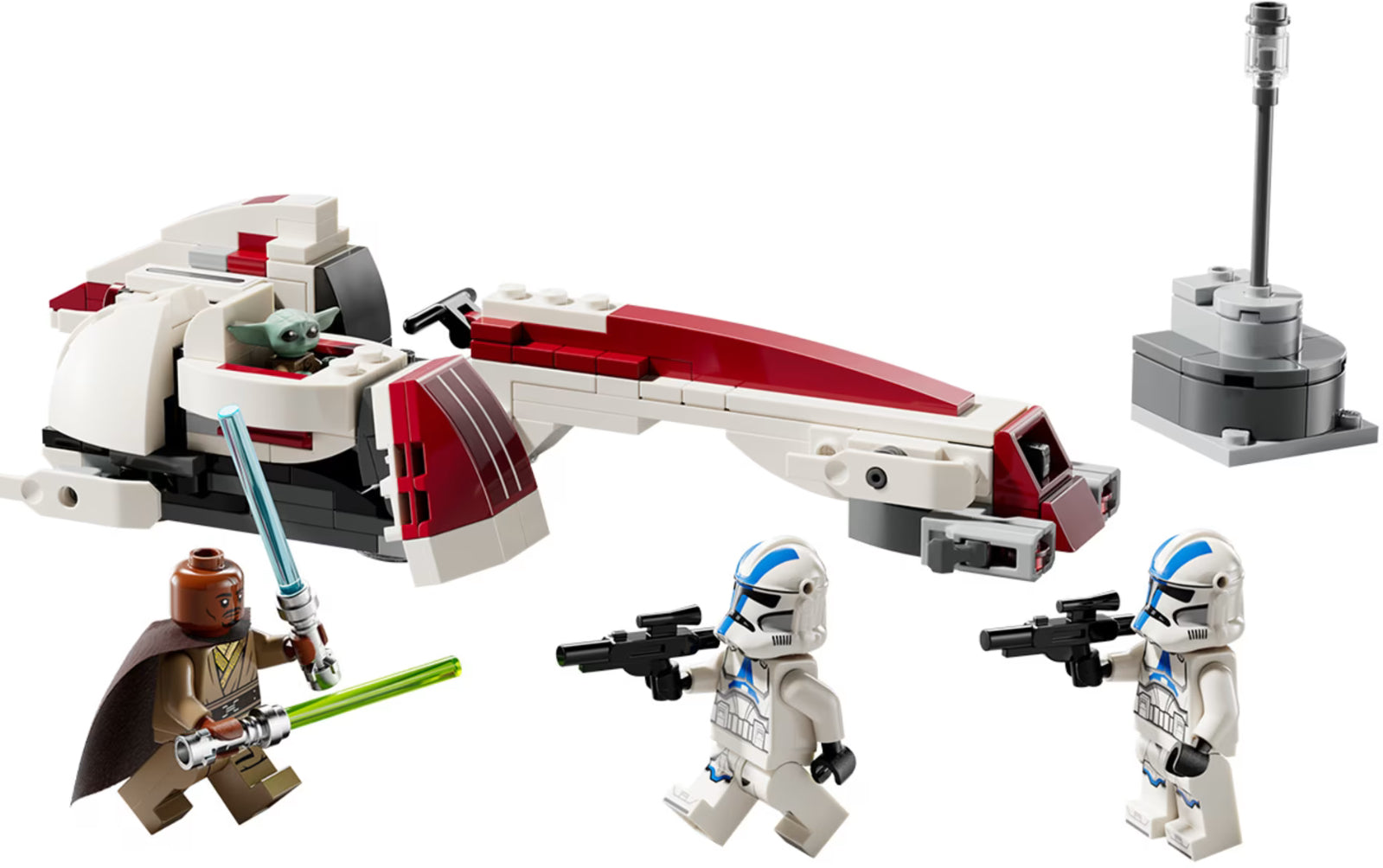 - Detailed Star Wars BARC speeder bike buildable toy - Features a minifigure cockpit, 2 stud shooters and a detachable sidecar with space for Grogu's buildable hoverpram