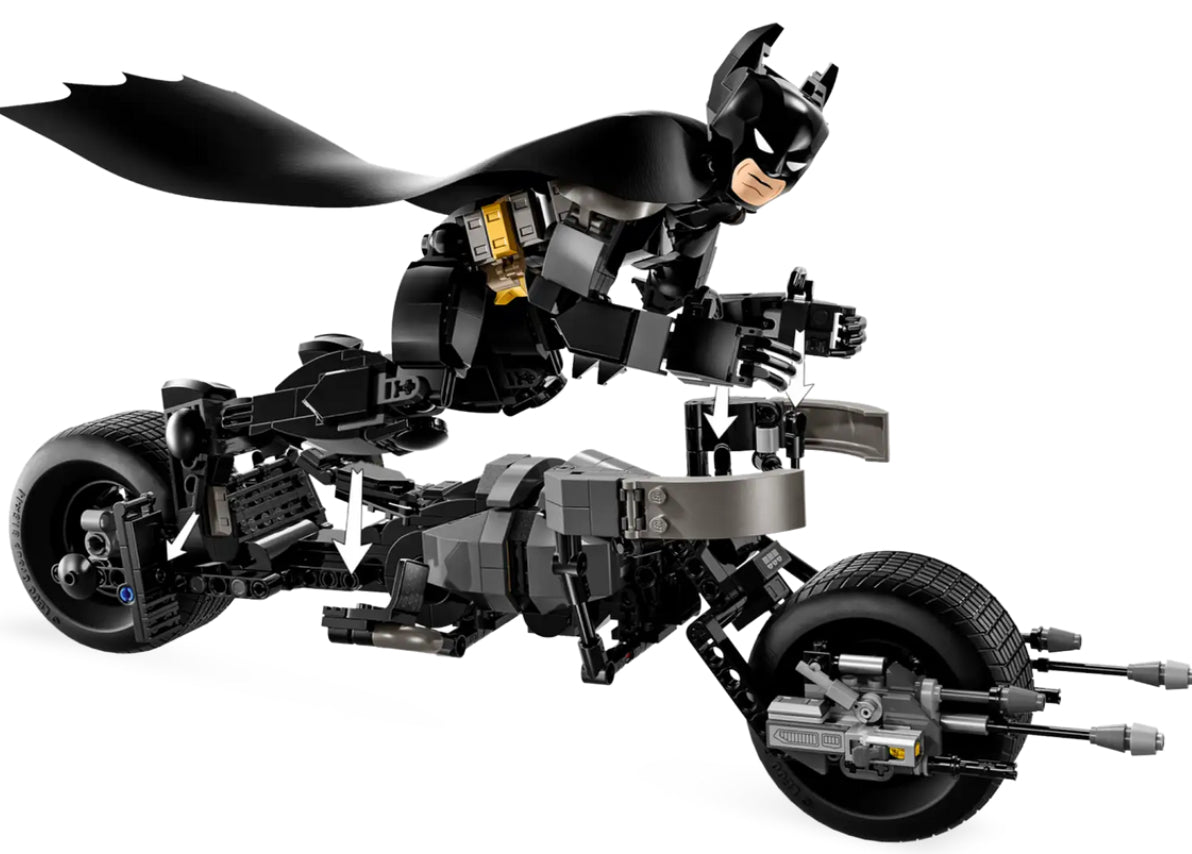 - The Dark Knight toy with bike – LEGO® DC Batman™: Batman Construction Figure & the Bat-Pod Bike puts a Batman collectible figure and bike toy into the hands of boys and girls aged 12 and up