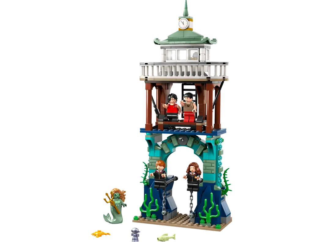 - 5 LEGO® minifigures and 2 LEGO figures – Harry Potter™ with flipper elements, Viktor Krum with a shark head element, Hermione Granger™, Ron Weasley™ and a Merperson, plus Grindylow and crab figures