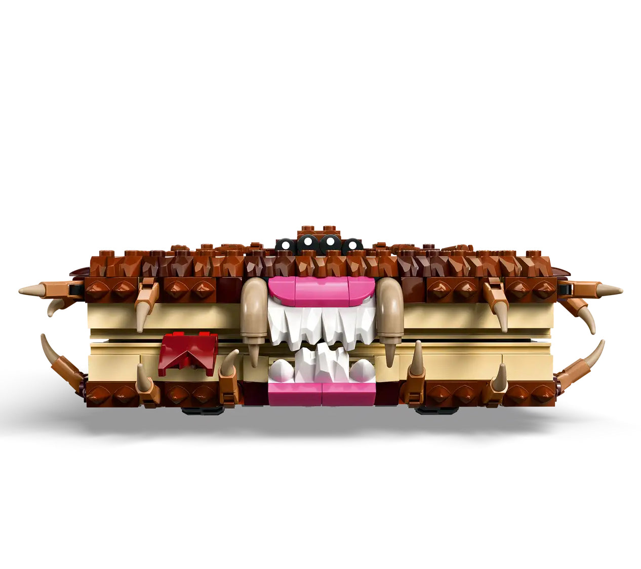 Put the magic of Hogwarts™ lessons in the hands of your young wizard, witch or Muggle™ with the LEGO® Harry Potter™ Chomping Monster Book of Monsters building toy (76449). The fun fantasy set features a detailed brick-built recreation of The Monster Book of Monsters, the sentient textbook used in the care of magical creatures. The model has hidden wheels and a pull-back function – so place it on a flat surface, pull back, let it go and watch it speed away with its mouth chomping.