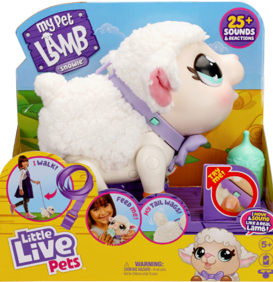 Introducing Snowie, the Little Live Pets My Pet Lamb! Snowie is an interactive baby lamb that brings the joy and wonder of owning a real lamb to life. With lifelike features, Snowie feels, moves, and sounds just like a baby lamb. Experience over 25+ adorable sounds and reactions as you interact with Snowie.