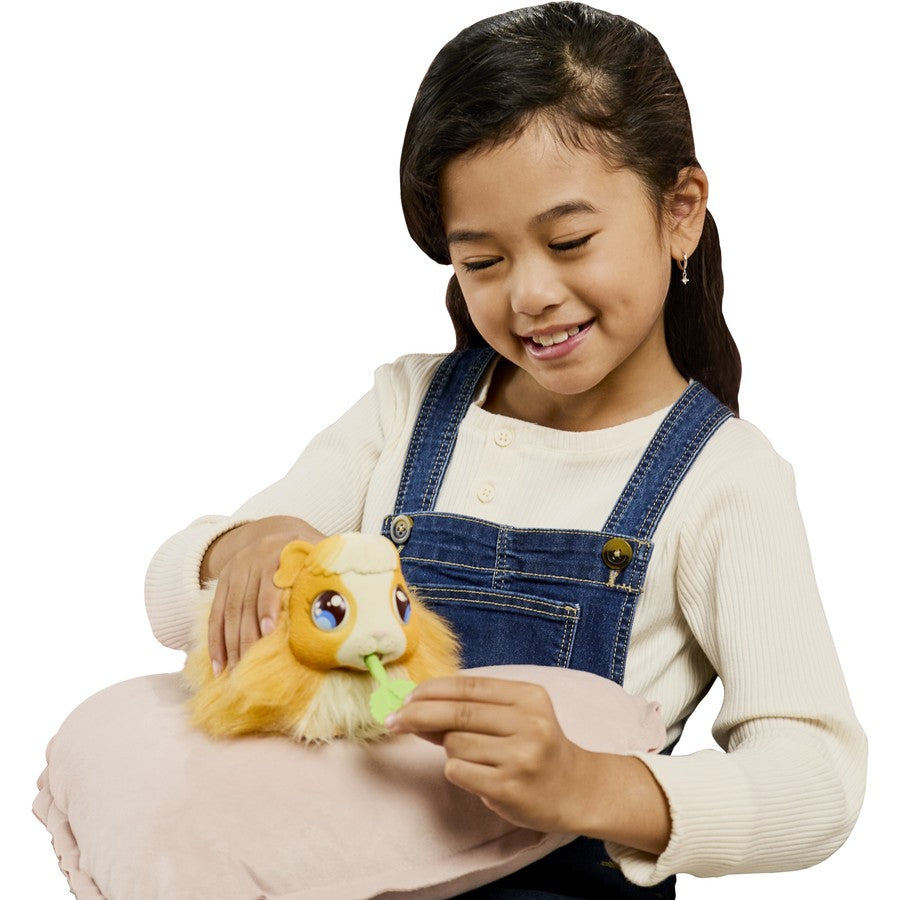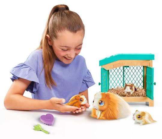 Mama Surprise takes caring for your pet to a whole new level. This soft, interactive Mama guinea pig comes with a deluxe, interactive hutch. Care for Mama by feeding her and brushing her long, beautiful hair with the accessories provided.