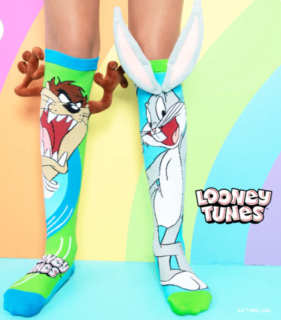 Get ready to jump into joy with these adorable Bugs and Taz socks featuring the charming Bugs Bunny with plush stand-up ears and the wild Taz with his 3D plush arms ready to chase after his friend! These socks are a statement of fun - perfect for brightening up your day with a splash of colour and nostalgia! Ideal for Easter or if you're a fan of classic cartoons, they're sure to spark smiles and bring your favourite animations to life right at your feet!