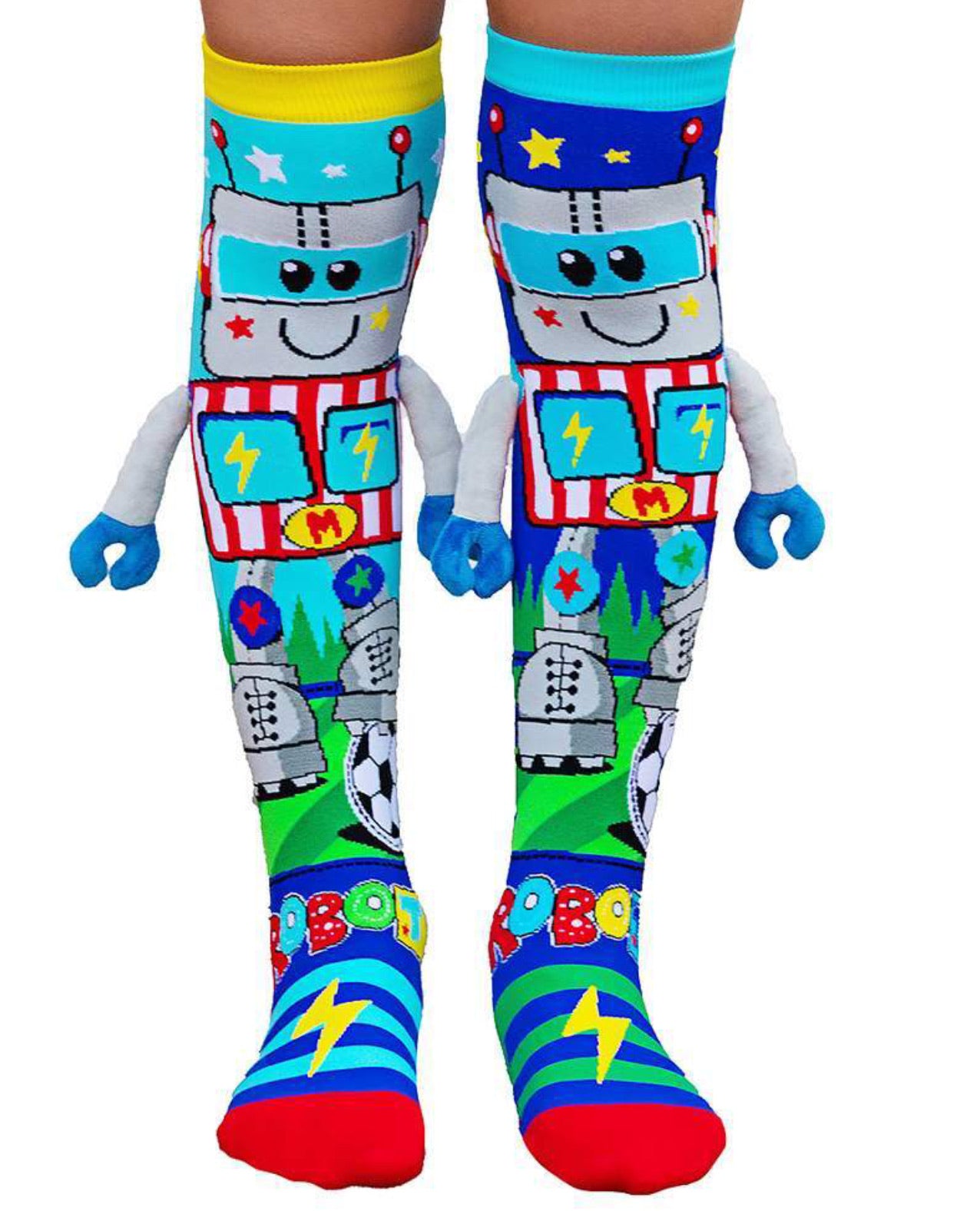 We are nuts (and bolts) about these ultra-cool robot socks! Ready for action with their soccer balls and plush robot arms, these robots can’t wait to meet their next best friends.