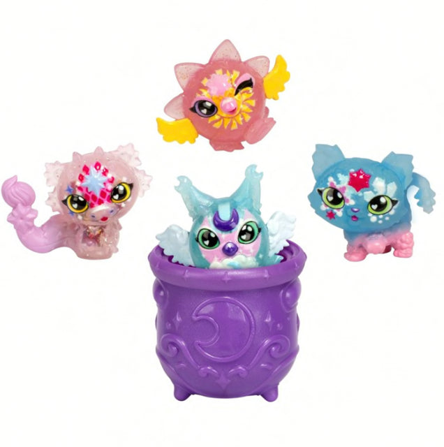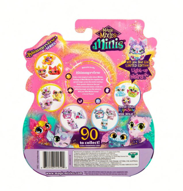 Welcome to the Shimmerverse! Now your child can enter a new magical realm where Mixies spread their magic across the world leaving a little sparkle wherever they go! Magic Mixies Minis are small in size but big on surprise! Mischievous and magical, Minis are so much fun with all their different ways to play! There are 90 Magic Mixies Minis for kids to collect across five new magic powers - Starlight, Ice, Sun, Rainbow and Moonstone. Each power has a different magical reveal such as glowing, sparkle reveal and colour change! Maybe you will find a Limited Edition Light-up Heira! The Magic Mixies Minis Four Pack contains four Minis toy figures including one Mini Mixie hidden inside a Cauldron. Collect all 90 magic Mixies Minis and join them as they travel across the Shimmerverse and adventure into a new world of real magic!
