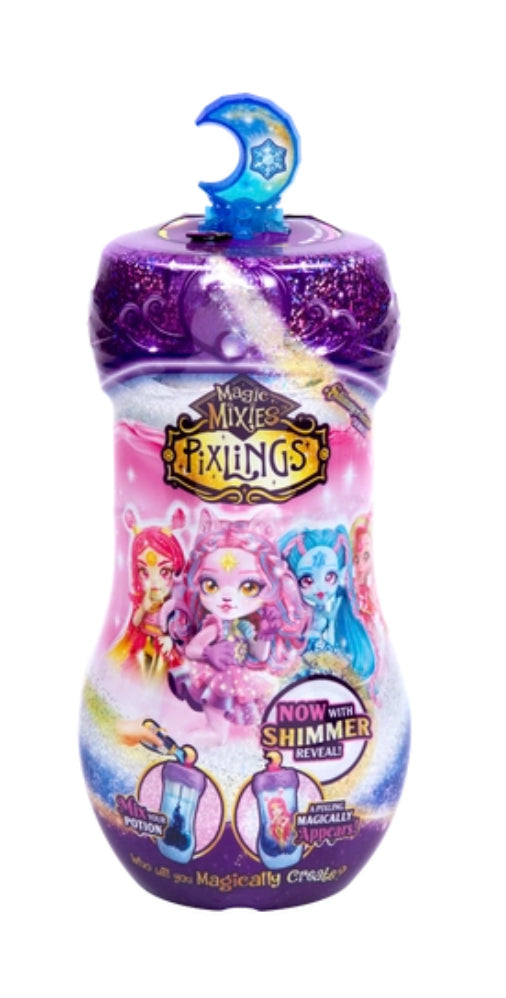 Magic Mixies Pixlings come with all the magical ingredients required to make Pixlings appear and come to life! To create a potion, combine water with the magical ingredients in the potion bottle. Watch as the liquid transforms to a shimmering deep blue and swirls mysteriously within the bottle.