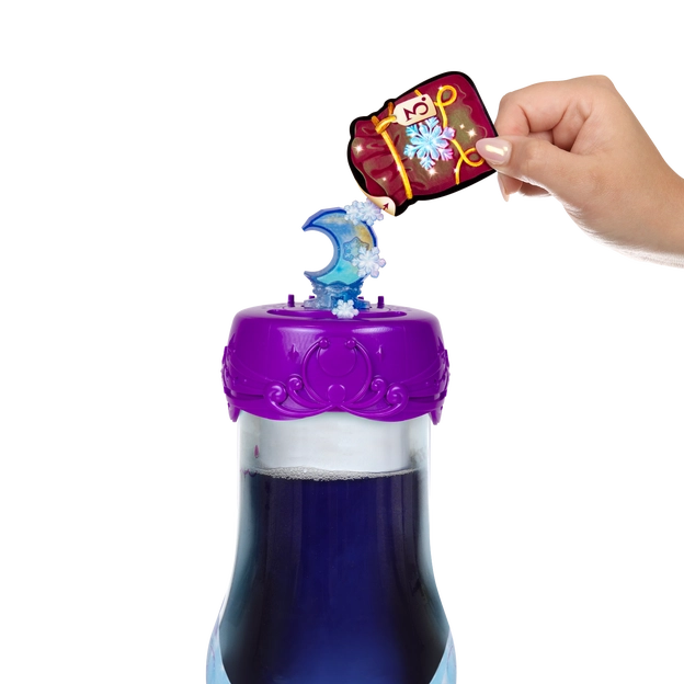 Say the magic words “Magicus Mixus” whilst turning and pressing down on the crystal gem topper, and then witness REAL magic! The shimmering deep blue potion will turn clear, revealing your beautiful Pixling doll!