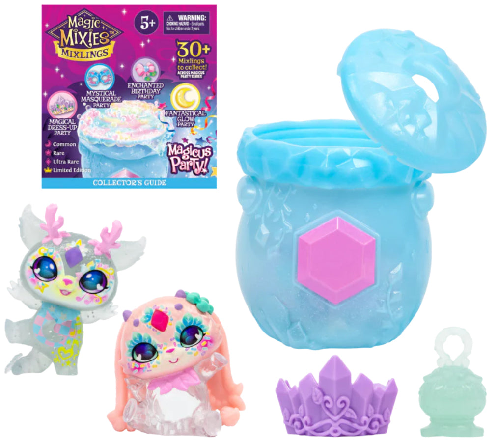 Discover the inner party magic within the Magical Dress-Up Party Mixlings. Magically reveal a masquerade makeover surprise with the Mixlings from the Mystical Masquerade Party. Reveal a party surprise with the gift of magic within the Mixlings from the Enchanted Birthday Party or cast a glow spell to get the party started with the Fantastical Glow Mixlings. Maybe your child will find the Limited Edition Mixling - Xander!