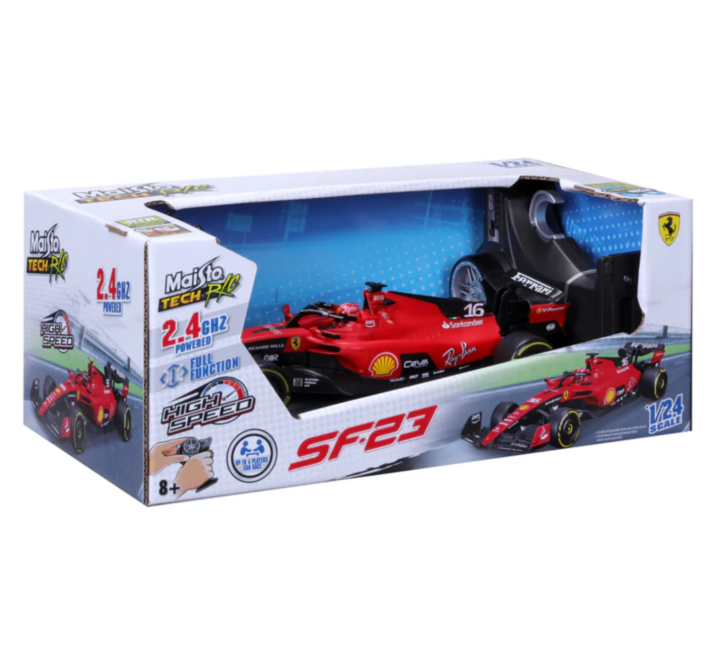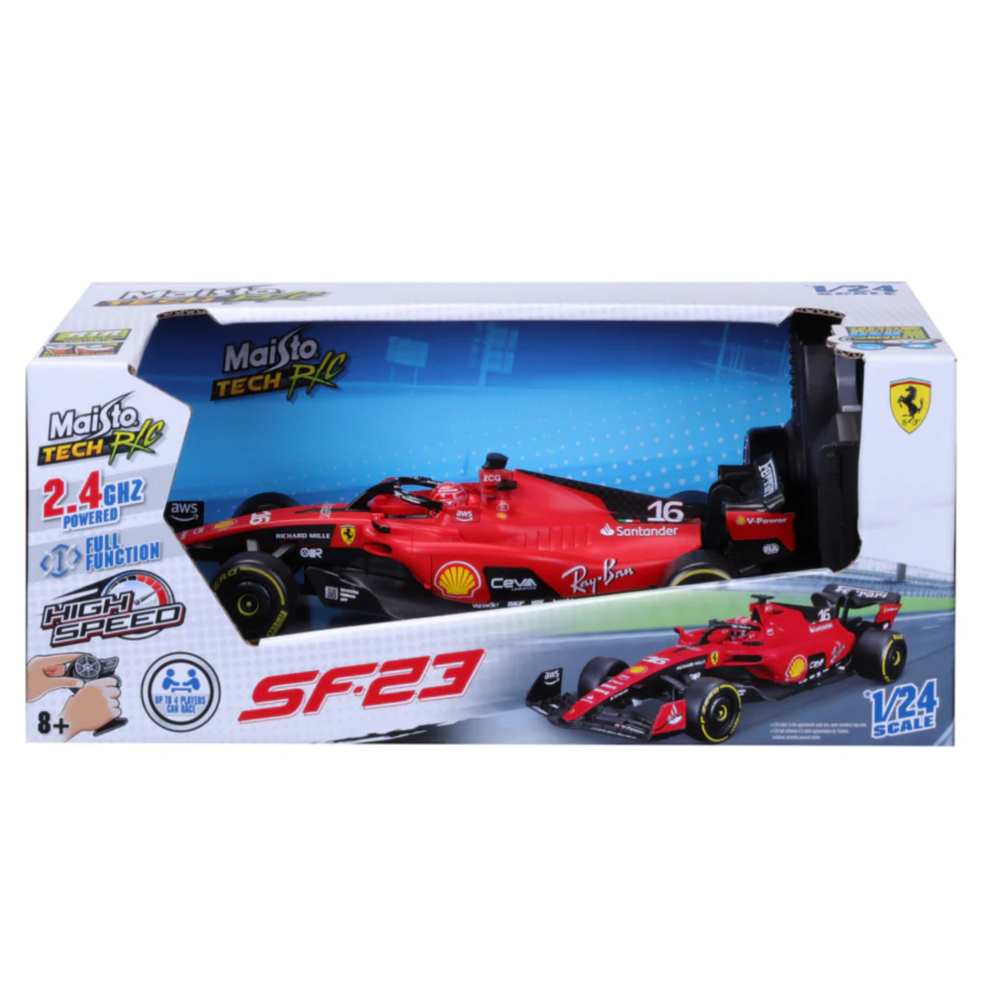 Introducing the MAISTO TECH 1:24 RC PREMIUM - F1 FERRARI SF-23. Get ready to experience the thrill of racing right at your fingertips! This remote-controlled Ferrari SF-23 is a dream come true for all F1 enthusiasts.