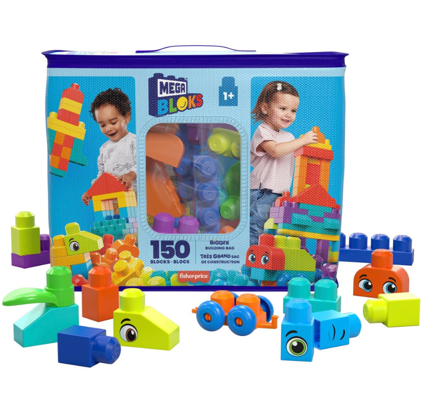 Build and explore limitless construction possibilities with the deluxe building bag by Mega Bloks First Builders. This set is every child’s dream come true, with 150 blocks, including new shapes, to encourage endless creativity. Use the classic coloured blocks to build tall towers, crazy castles, funny creatures, or whatever else your child can dream up. When playtime's over, cleanup is easy with the handy storage bag.