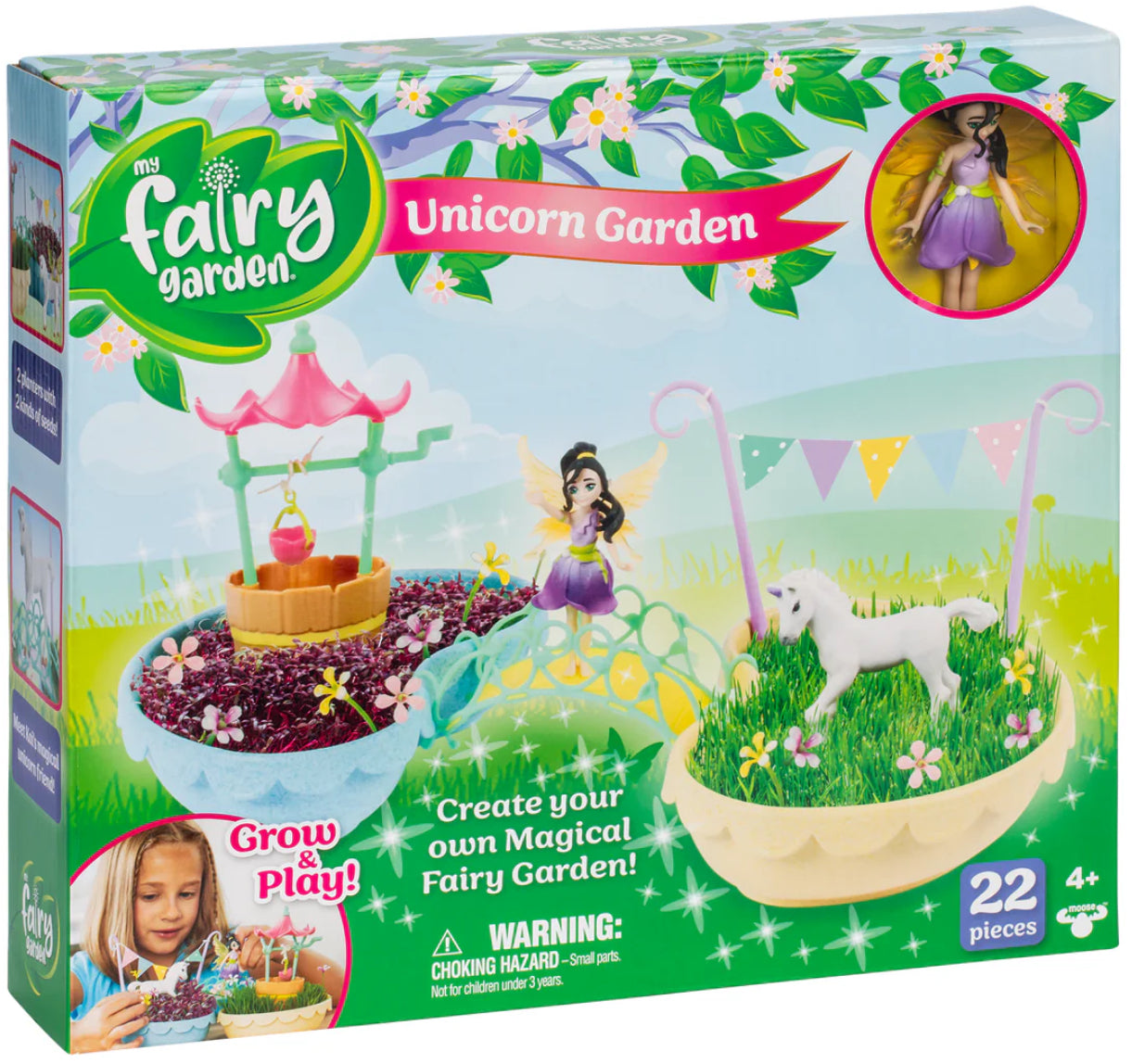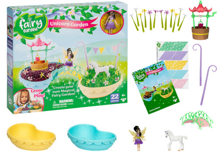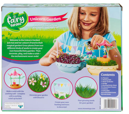 Now your child can create their own magical Fairy Garden with the My Fairy Garden - Unicorn Garden. Join magical fairy Kai and her unicorn friend in their magical garden! Grow plants from 2 different kinds of seeds to create your own beautiful fairy garden. Then decorate, play and make a wish - the enchantment never ends! This wonderfully creative toy includes everything you need - just add soil. The Unicorn Garden includes 2 planters for your child to grow and decorate. There are so many cute accessories that come with this fun and education kit. Make a wish with the wishing well - complete with a working wind-up bucket. Connect the planters with the beautiful bridge. Decorate your garden with the included 12 decorative flowers. Children can even create their own bunting and more for Kai and her unicorn! The Fairy Garden come with 2 packs of fast-growing seeds. Very quickly children will see their plants sprout up to become a real living garden. This Unicorn Garden is just one of many gardens in the My Fairy Garden range - a collectable range that encourages interaction with nature through play. The kits offer children a delightful experience of imaginative open-ended play whilst discovering the magic of growing real plants. Make your child’s bedroom an enchanted place with these magical toys! For ages 4 and up. My Fairy Garden is partnering with One Tree Planted to help reforest the world! For every five Fairy Gardens sold, one tree is planted, up to 10,000 trees!
