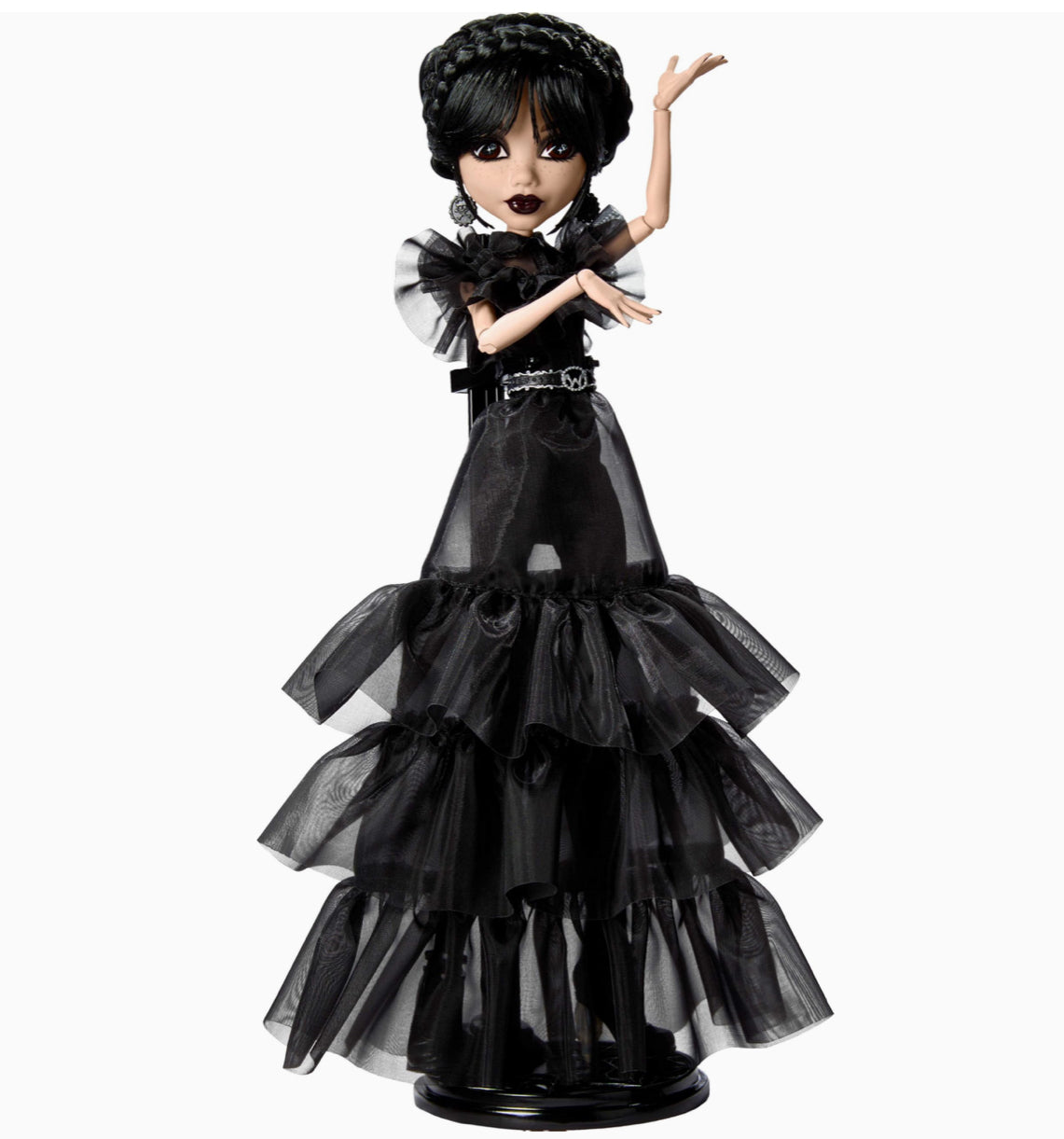 Inspired by a dance scene in the show that quickly went viral, the Rave’N Wednesday doll is drop dead gore-geous in a sheer layered gown. With her ruffled skirt and boo-spoke heels featuring icicles and yetis, she’s set to hit the dance floor like a ghoul possessed.
