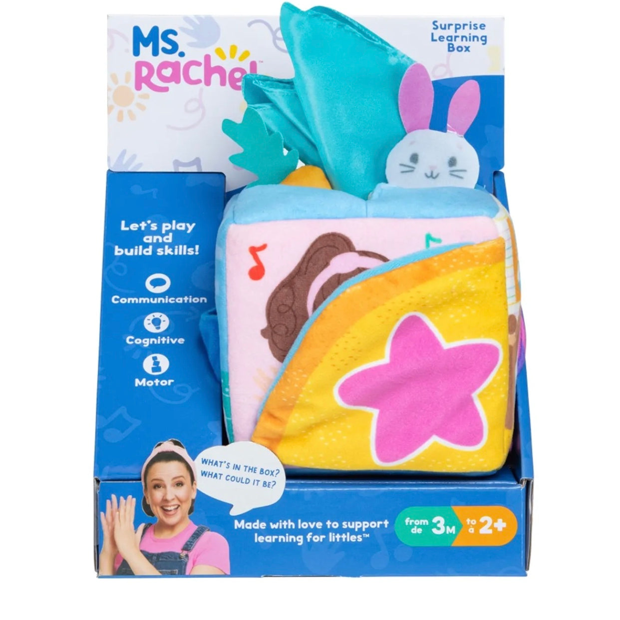Playtime for baby is full of fun with the Ms. Rachel Surprise Learning Box! Inspired by Ms. Rachel’s popular baby and toddler videos, designed to nurture early developmental milestones like animal and object recognition while honing fine motor skills like pinching and grabbing. The baby-safe toy box features four interactive learning scenes and six soft surprise accessories, including a plush teddy bear, satin scarf, and more. Prompt interactions & encourage early speech development with the bonus learning card, featuring play tips and skill-building activities.