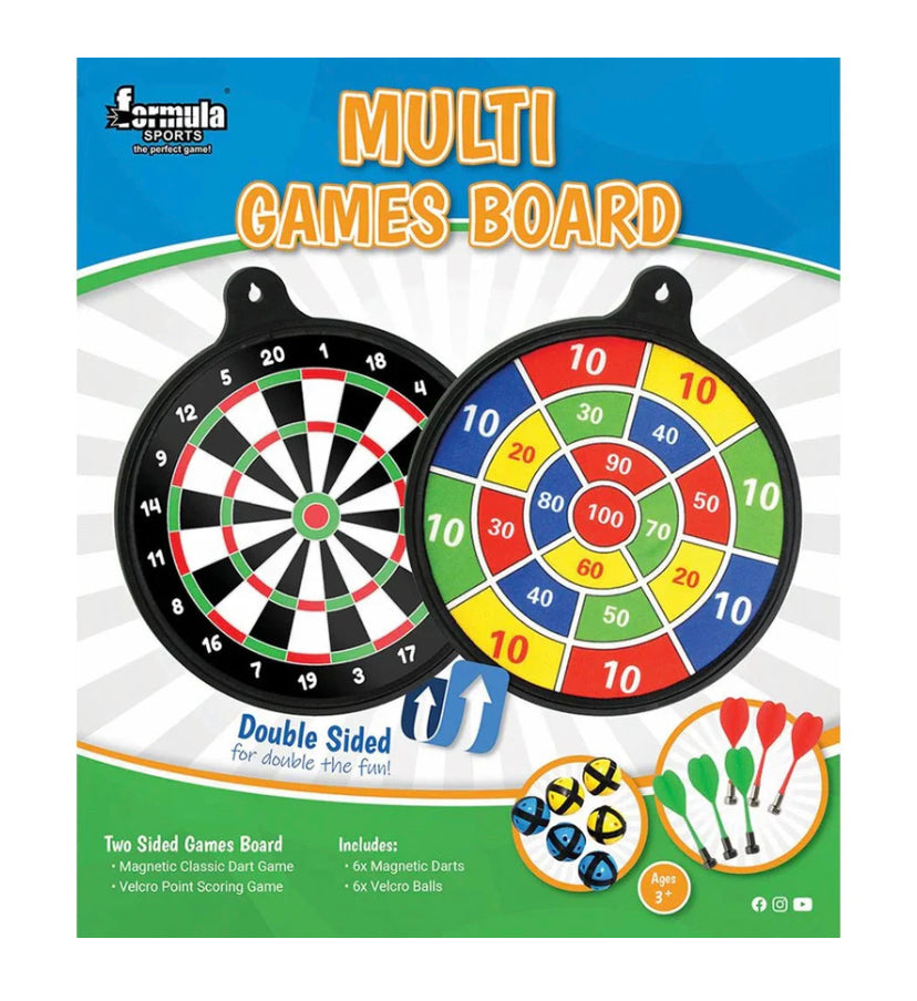 - Velcro Target on the reverse side features a point scoring game using Velcro balls.