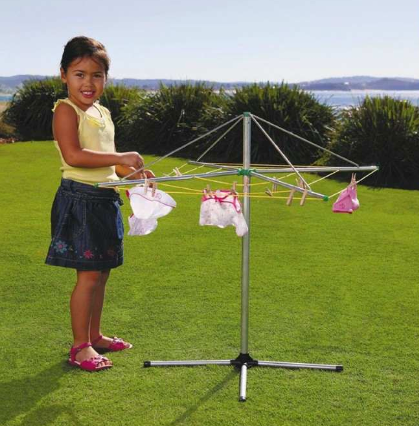 Sturdy metal clothes line for the child who wants to hang out the laundry with mum or dad. Excellent realistic role play toy. Galvanised for corrosion protection. Pegs included. Realistic rotating arms, complete with sturdy nylon cord. Easy to assemble.