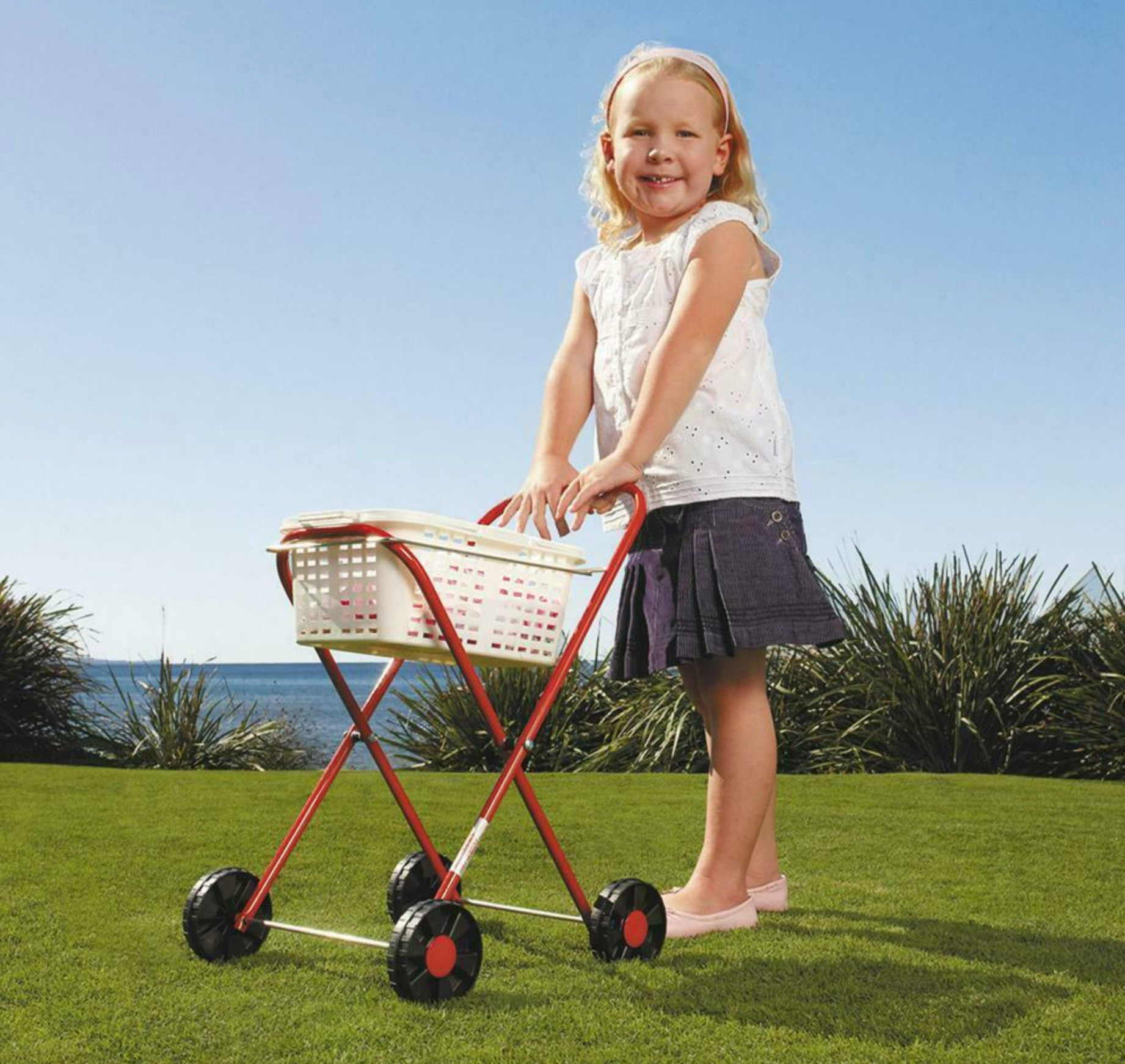 The Peg ‘N Play Trolley is perfect for the child that likes to do the laundry with mum or dad. With a metal frame that is powder coated just like the real thing and a plastic basket to hold teddy or clothes, this toy will give hours of fun. Standing 500mm high, this quality item will last for years. Includes pegs. Excellent role play toy.