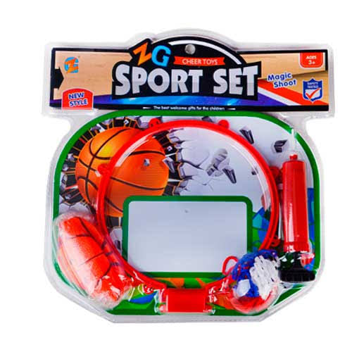 Elevate your basketball skills with our Basketball Set. Featuring a basketball ring that attaches to your door, this set is perfect for all ages 3 and up. Complete with a small ball and pump, you'll be ready to play and improve your game in no time.