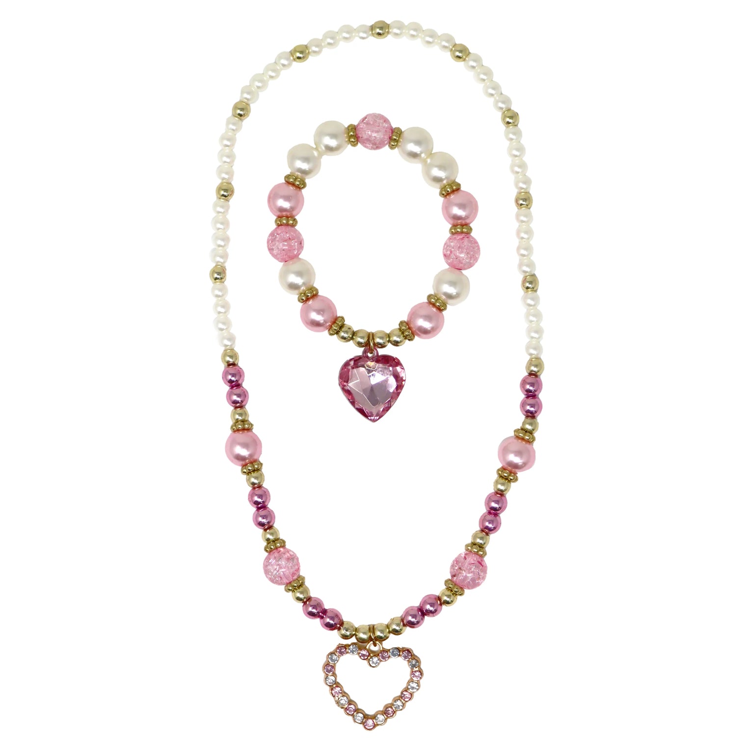 Pink Poppy’s Dance Pearl Heart Necklace & Bracelet Set is the perfect gift for your little one. Adorned with a stunning array of pearlescent and gold beads, this set adds a touch of glamour to any outfit. With charming pink heart pendants on both the necklace and bracelet, it’s designed to make your little one shine. Let them express their love for dancing and dressing up with this enchanting set!
