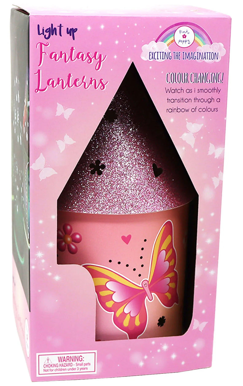 Pink Poppy’s Vibrant Vacation Colour Changing LED Lantern brings a sense of magic to all kids. This soft illuminating light-up LED Lantern is designed to comfort children as they sleep. Switched on, watch as the light smoothly transitions between a rainbow of colours illuminating a dark room. Switched off it acts as a decorative piece with a glittering roof displaying beautiful butterflies and flower illustrations. Completely safe for little hands all day and all night long.