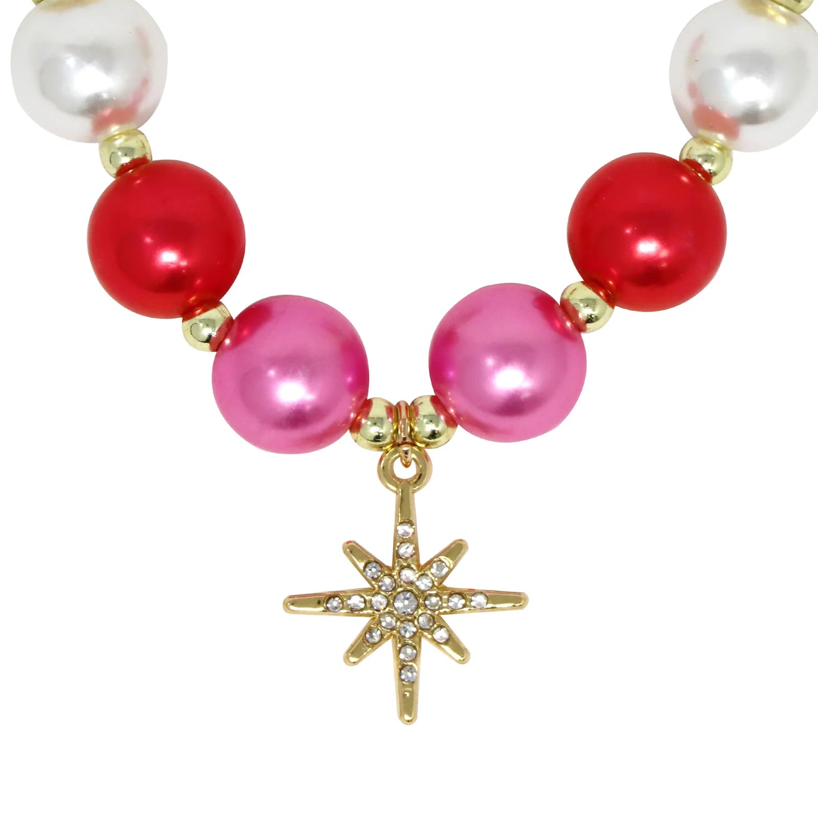 Christmas Necklace and Bracelet Set with Sparkly Star Charm is comprised of pearl beads gleaming just like Christmas baubles. Perfect to celebrate the joy of this festive season.