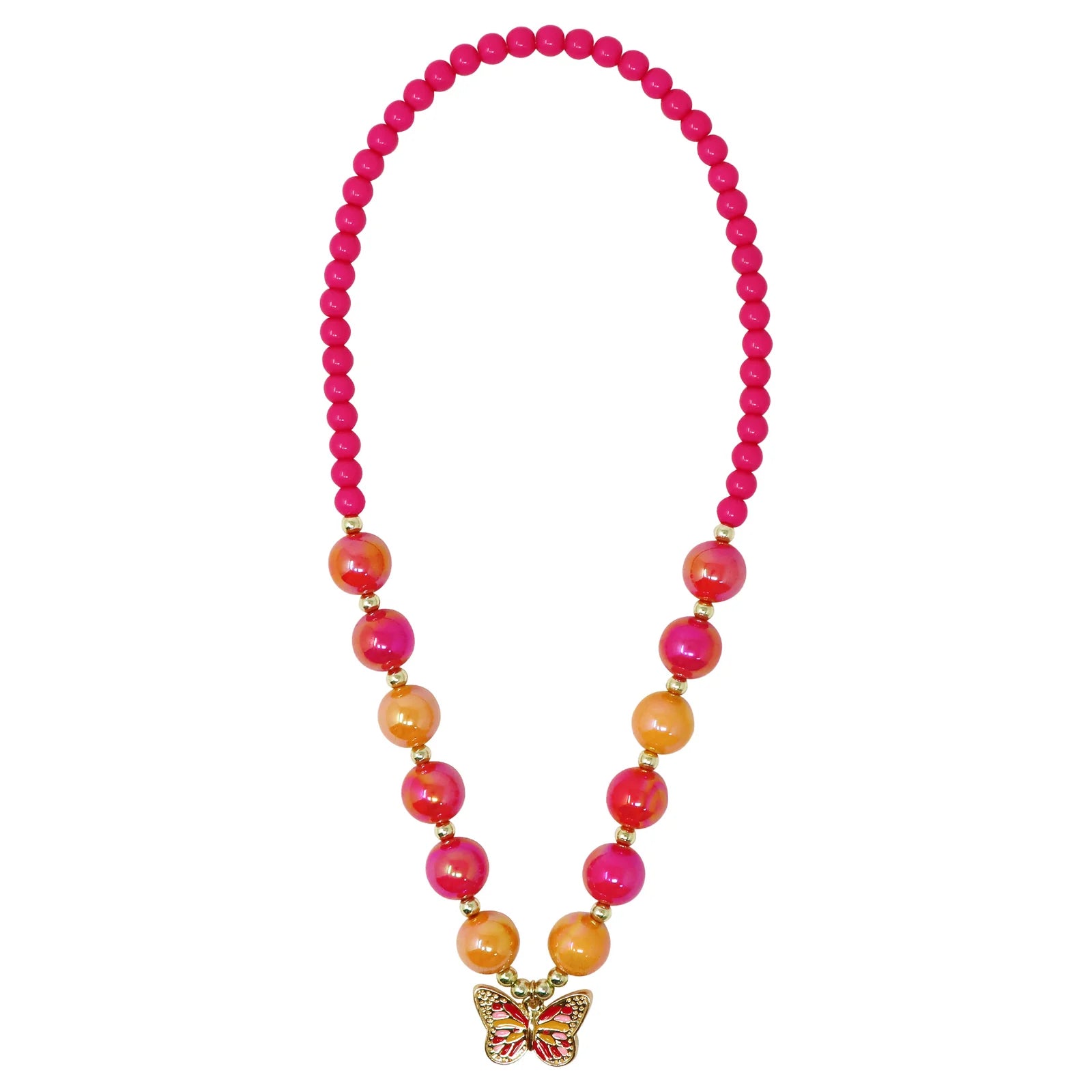 Pink Poppy's Fairy Butterfly Necklace is the perfect favour for your little one who loves butterflies. Features with pink/orange pearl-like beads with an enamel paint butterfly charm on necklace.