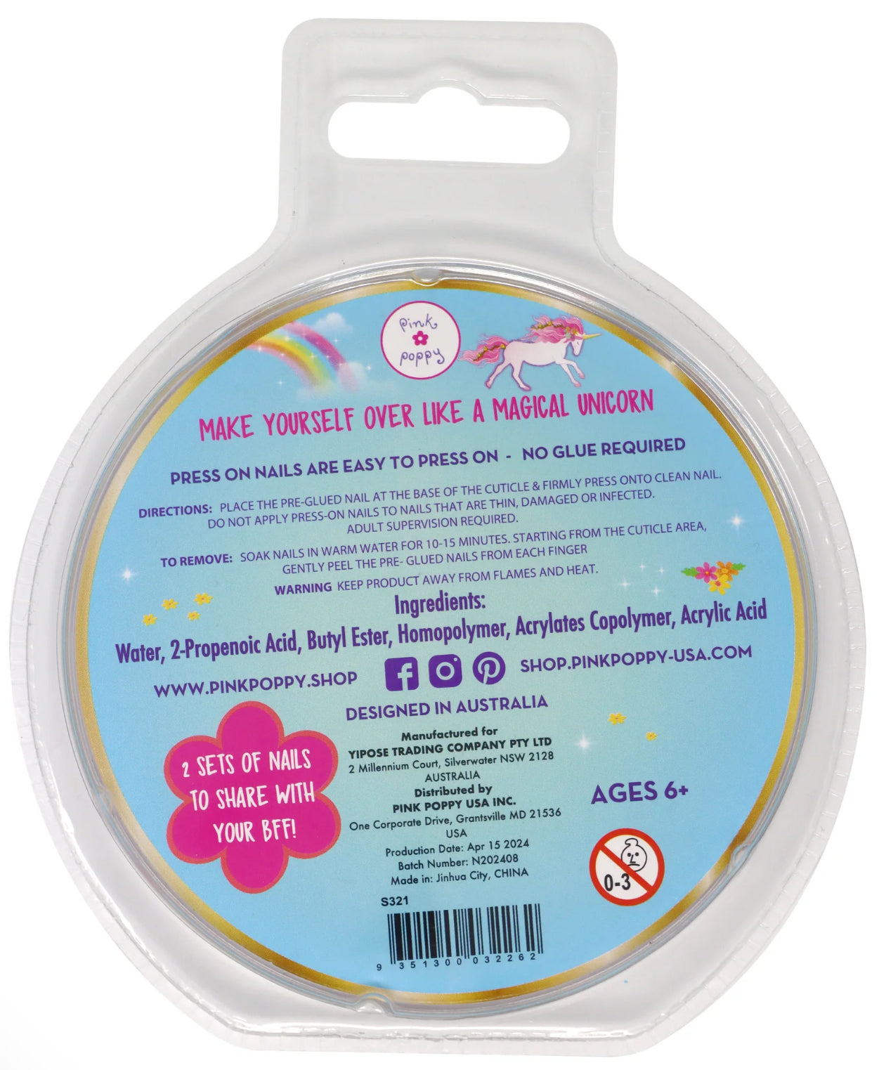 Complete your little one's magical outfit with Pink Poppy's Stardust Unicorn Press on Nails mini manicure! Safe for kids & Mum approved they come with an adhesive back so that they are easy to press on with no glue required!