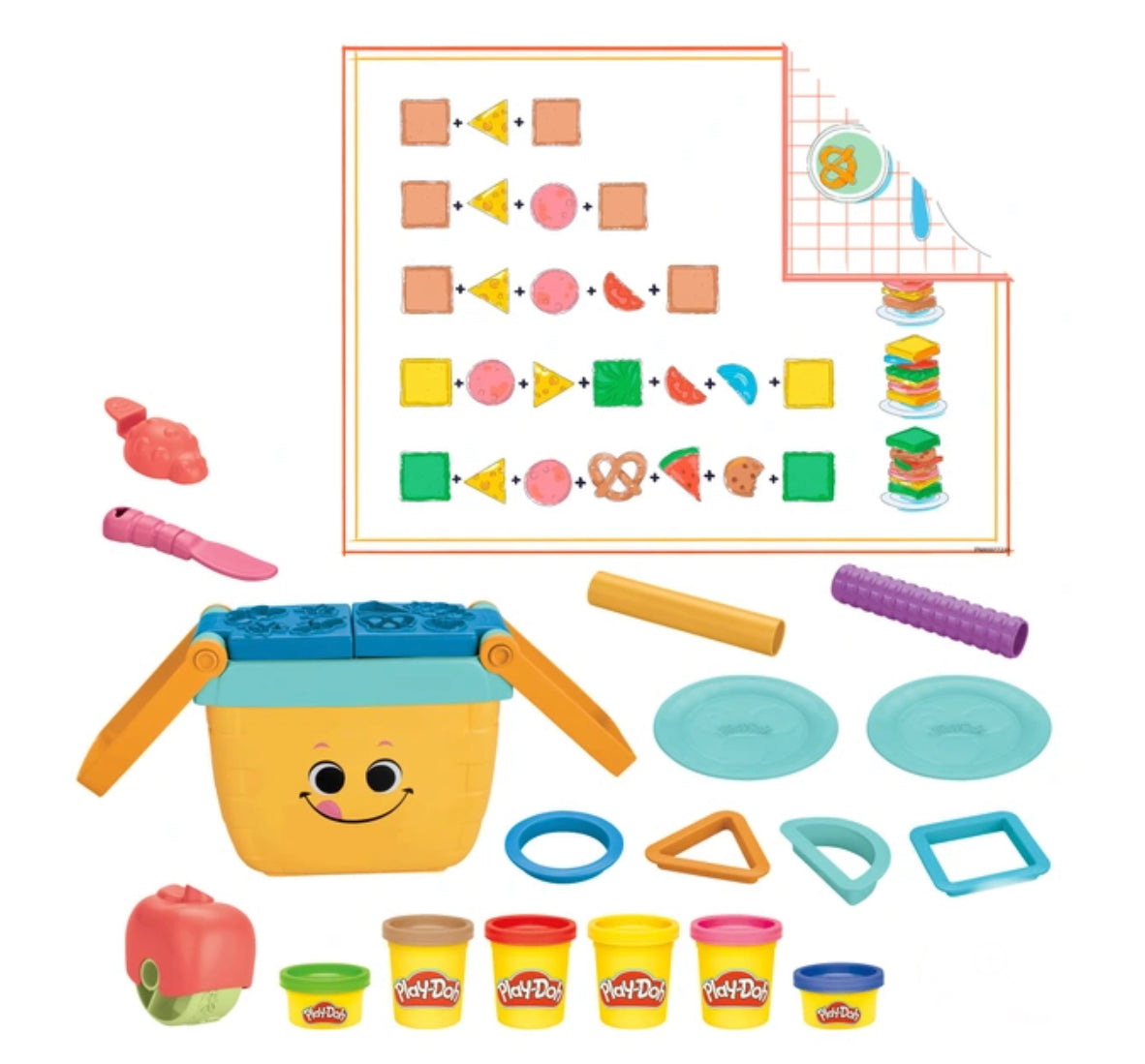 Rain or shine, the Picnic Shapes Starter Set is a perfect picnic set for kids! It comes with 12 starter tools, 6 Play-Doh colours and a toy picnic basket that stores the tools.