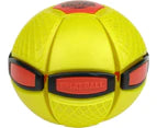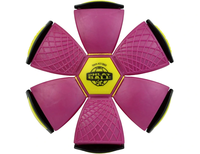 Throw a disc, catch a ball! Phlat Ball Jnr is a unique sports toy that transforms from a flying disc to a ball when thrown! Its variable time-delay feature provides a surprise transformation which adds fun to gameplay or just having a catch! Phlat Ball Jnr transforms from a 6-inch flying disc to a 4-inch ball.