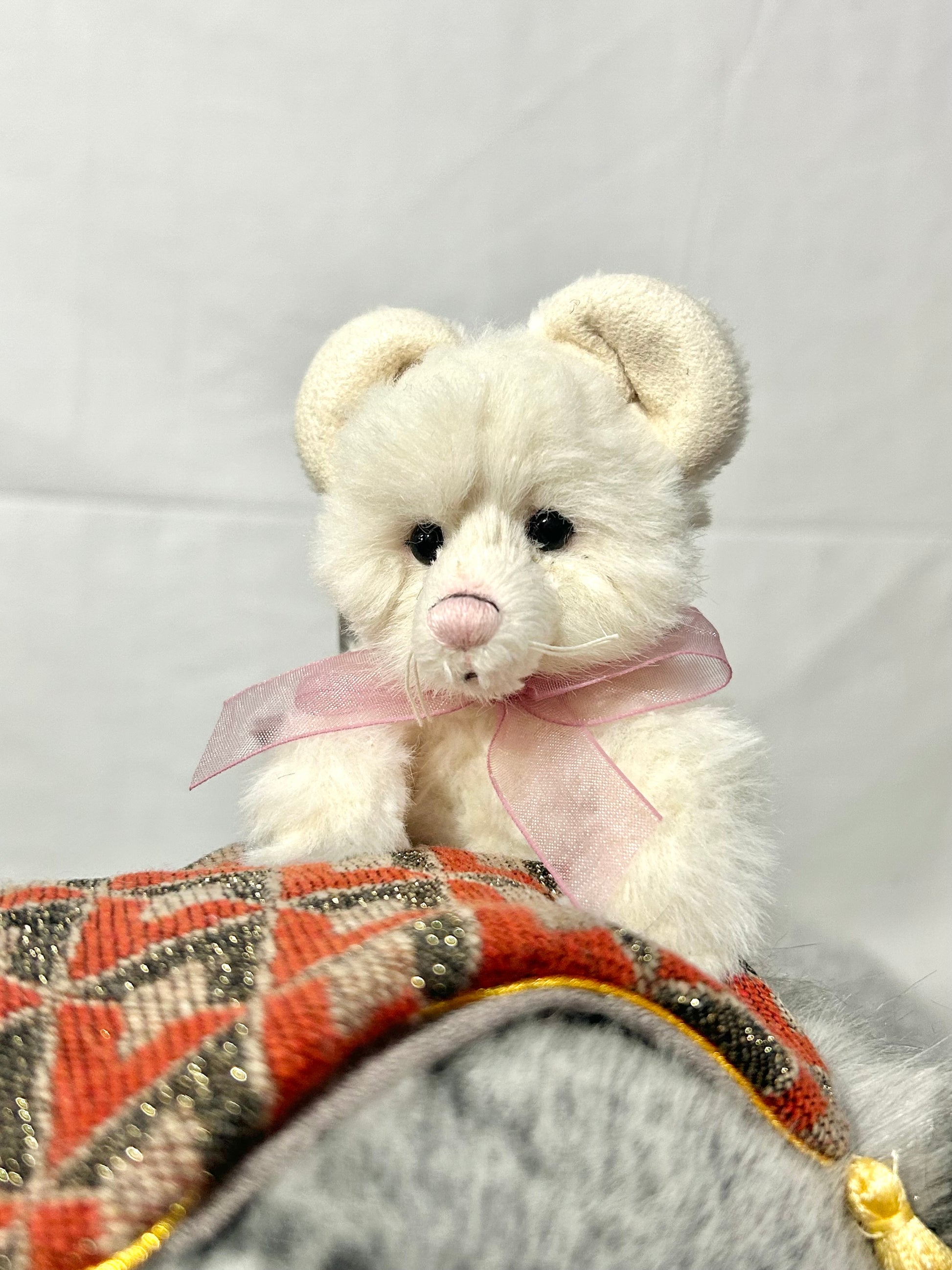 Isabelle Lee designed Piccadilly & Circus. Circus, ingeniously affixed to Piccadilly via a magnetic system, offers versatile seating configurations. Its luxurious, silvery-grey velvet-like fur is striking. Standing at 43cm or 14.5 paws, a unique piece for any collection.
