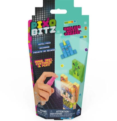 Make even more amazing Pixobitz creations with the Refill Pack! This DIY pack has everything you need to make your own 3D and 2D pixel art creations that stick together with water. The Refill Pack includes 270 Bitz (cube-shaped water fuse beads) in 10 colors, five accessories, over 100 water transfer decos, an easy-to-use spray bottle tool, a tray and three template cards. Start the building fun straight out of the pack or combine with the Pixobitz Studio (sold separately)! Following the templates in this bead kit, make six amazing end results, including an avatar, bunny, frog, unicorn, skateboard, and cereal box or design your own unique creations. Creating with Pixobitz is as easy as stack, spray, and style! Slide a template under the tray and place your Bitz on top – the square design makes them easy to stack, preventing them from rolling away. Mist each layer, then style your creation!