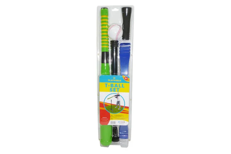 This T-Ball set is great for beginners. Comes complete with stand, ball and bat. The bat is nice and soft for little hands and light to lift. Ages 3 and up.