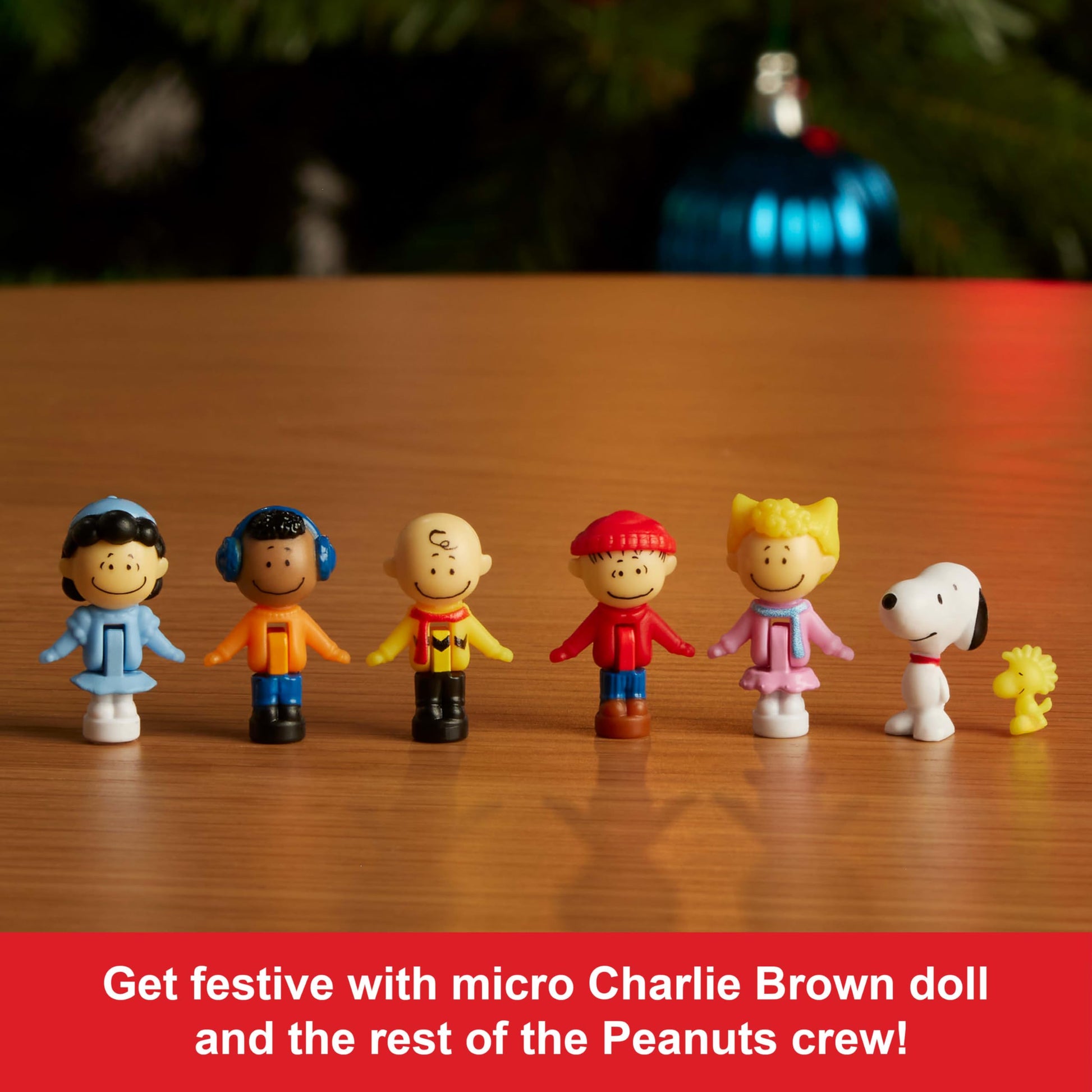 Recreate favourite moments from Peanuts with Polly Pocket in this collectible partnership compact! Peanuts goes tiny with six micro main character dolls, seven accessories, and four iconic, holiday-themed locations. Fans can sip hot cocoa by the fireplace or decorate the tree with micro-Charlie and Sally Brown dolls. Then, skate around the ice rink before having a dog bowl sled race with Snoopy and Woodstock.